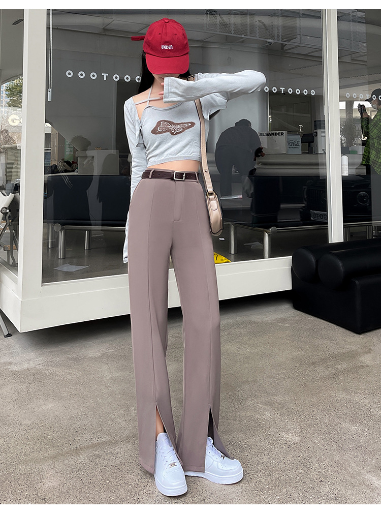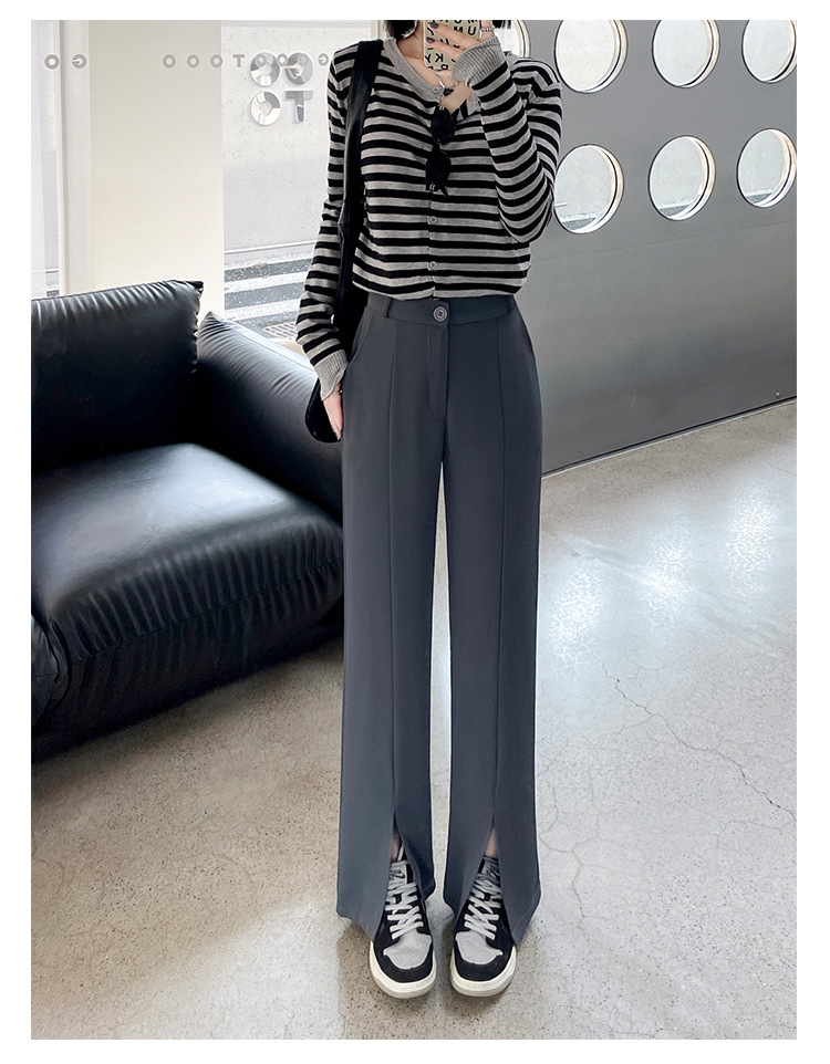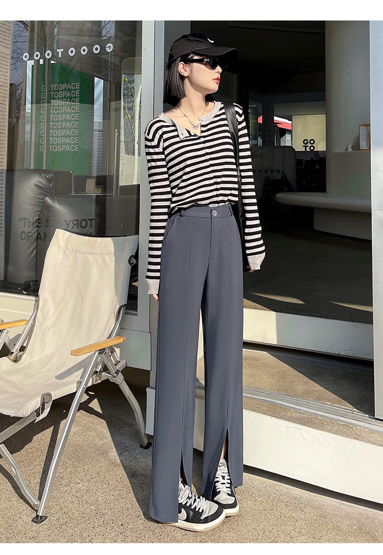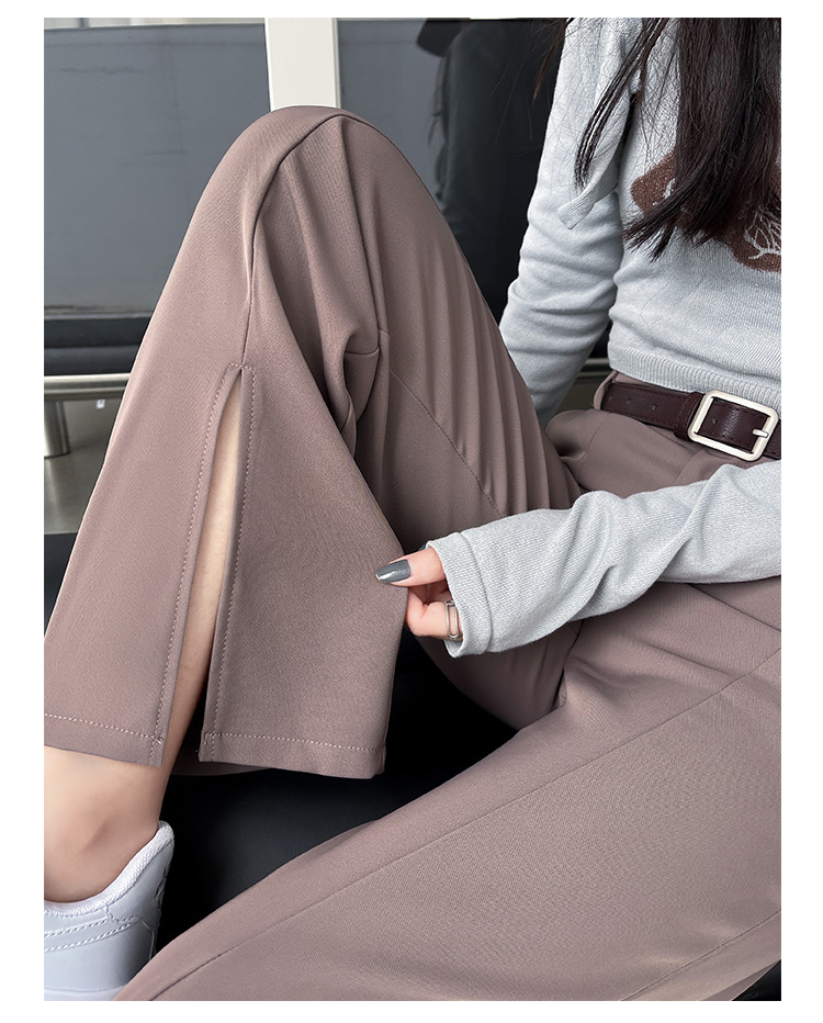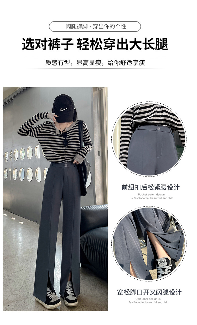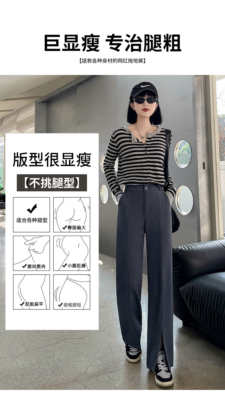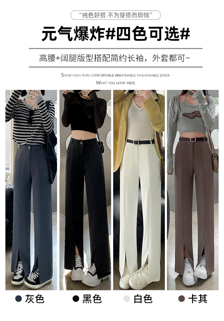 【网文面料】灰色开叉西装裤女裤子春季新款休闲裤女装阔腿裤女裤