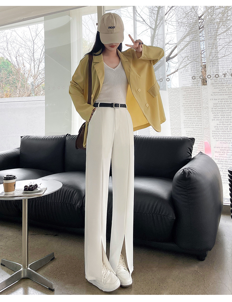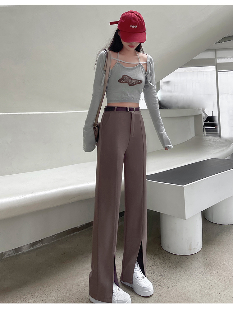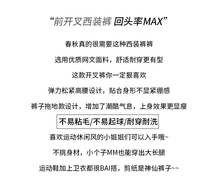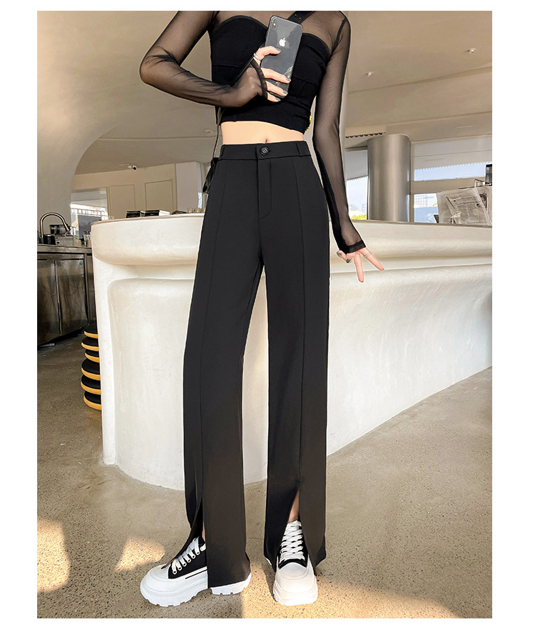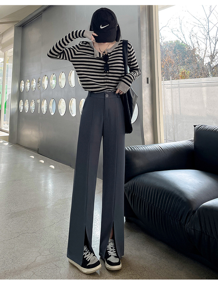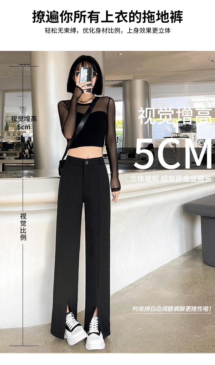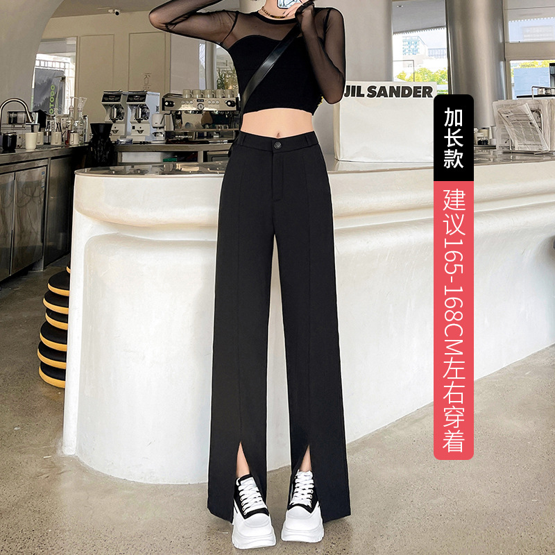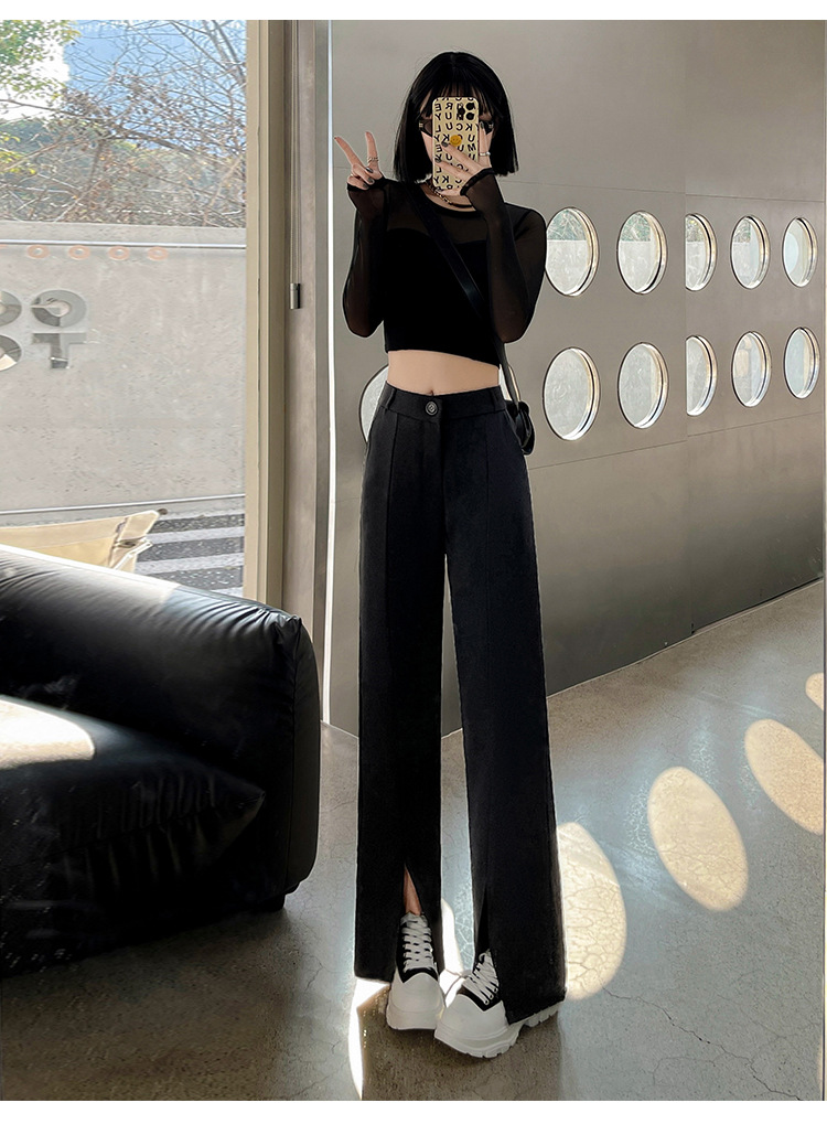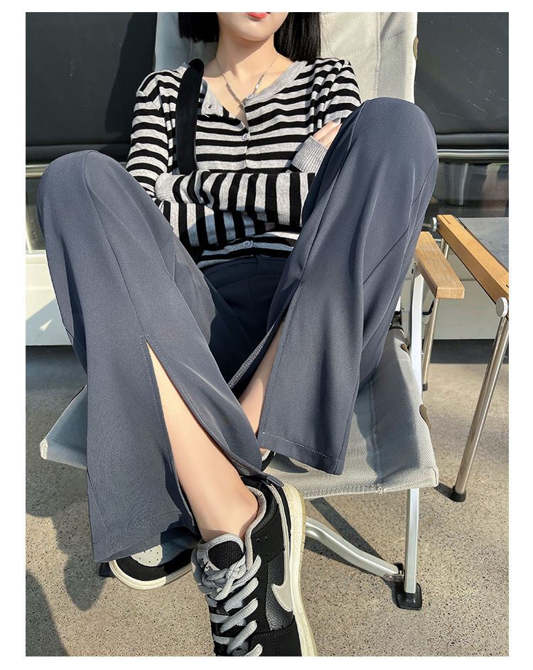 【网文面料】灰色开叉西装裤女裤子春季新款休闲裤女装阔腿裤女裤