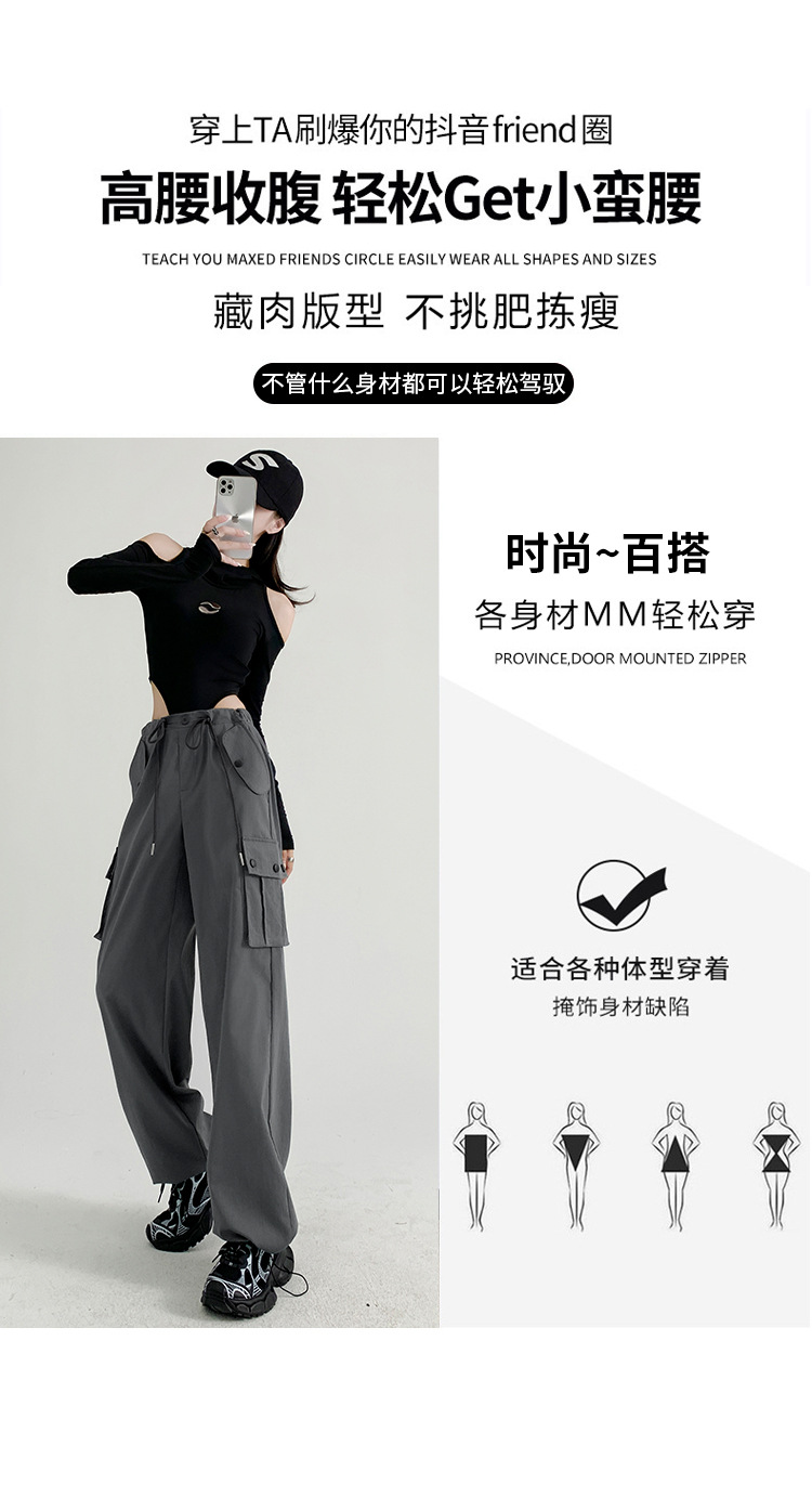 白色工装裤女裤子女款秋季新款辣妹直筒休闲卫裤显瘦阔腿运动裤