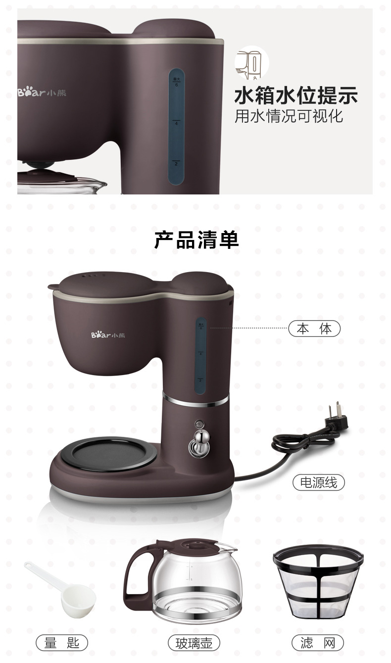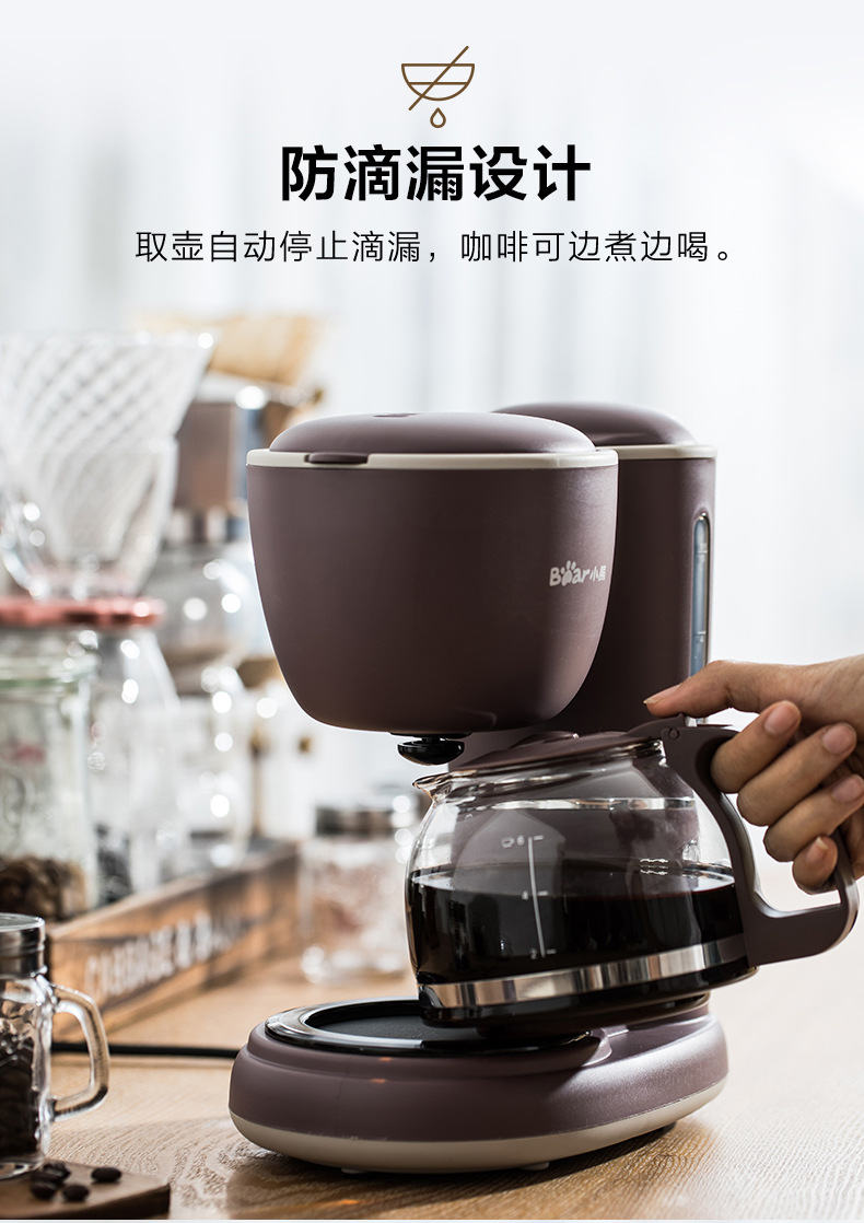 小熊咖啡机美式家用600ml滴漏式小型迷你煮泡茶壶煮咖啡KFJ-A06Q1