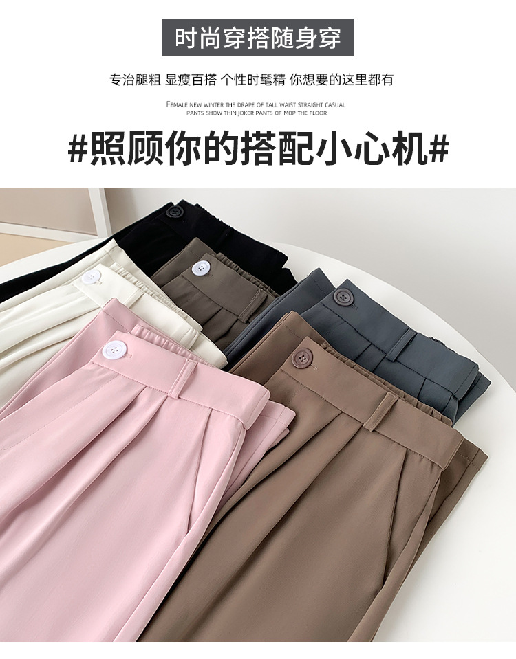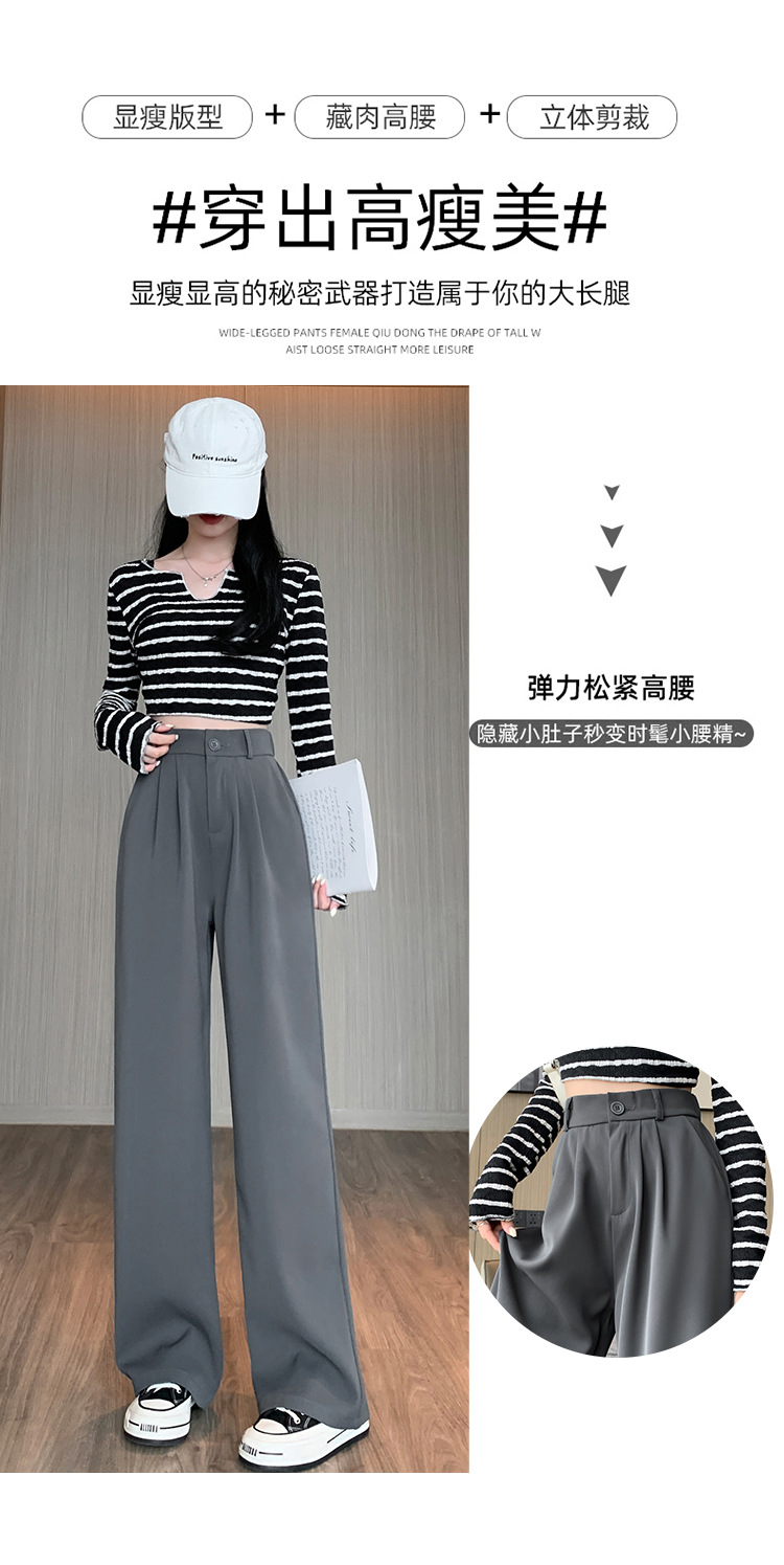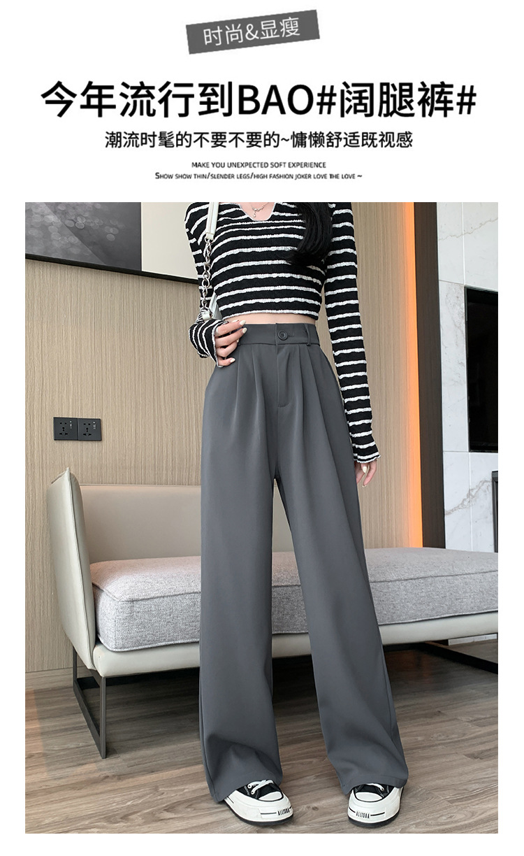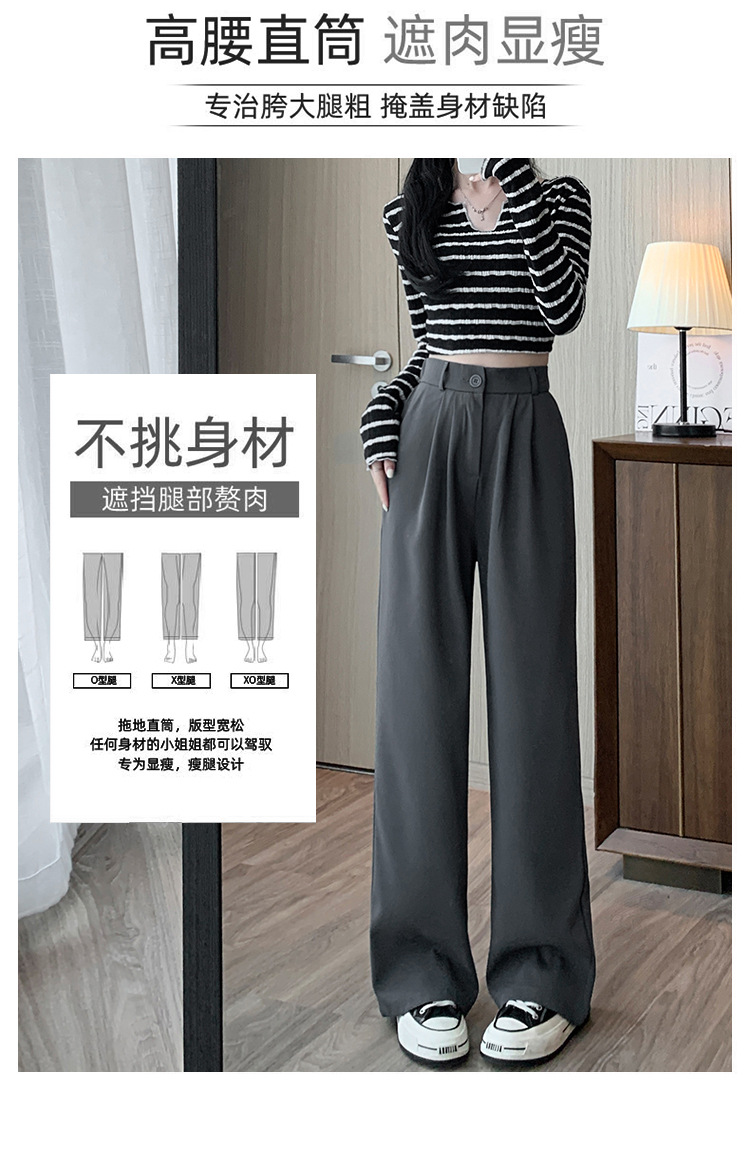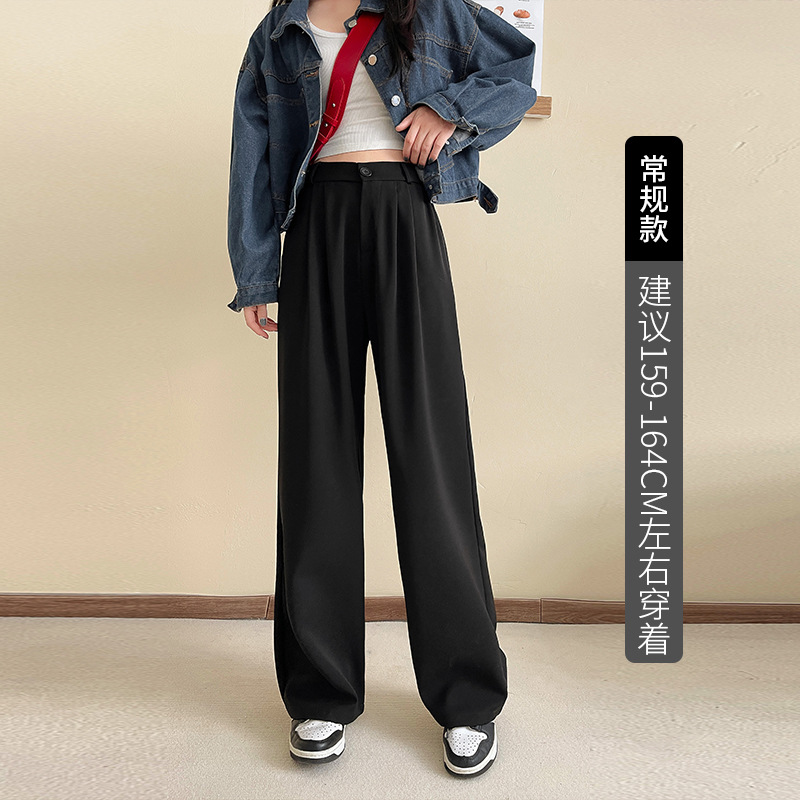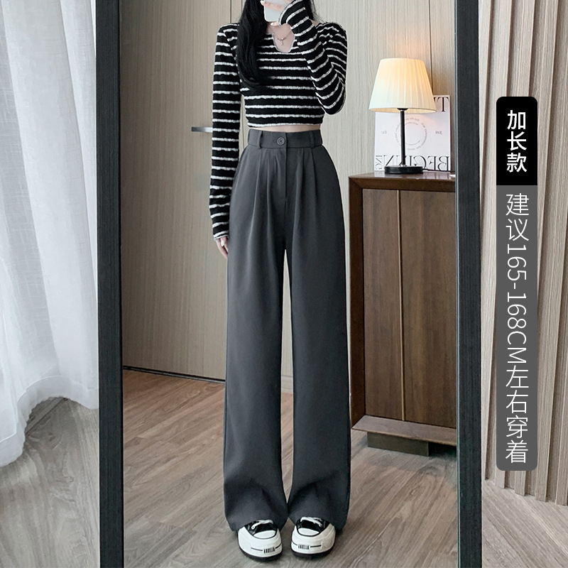 西装裤垂感裤子女春秋新款宽松高腰阔腿裤直筒显瘦小个子拖地长裤