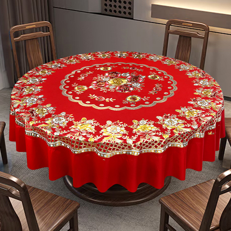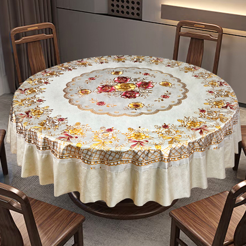 加厚高档圆桌布防水防油防烫免洗长方形PVC台布酒店家用餐桌布