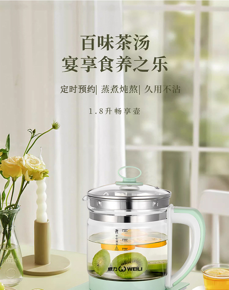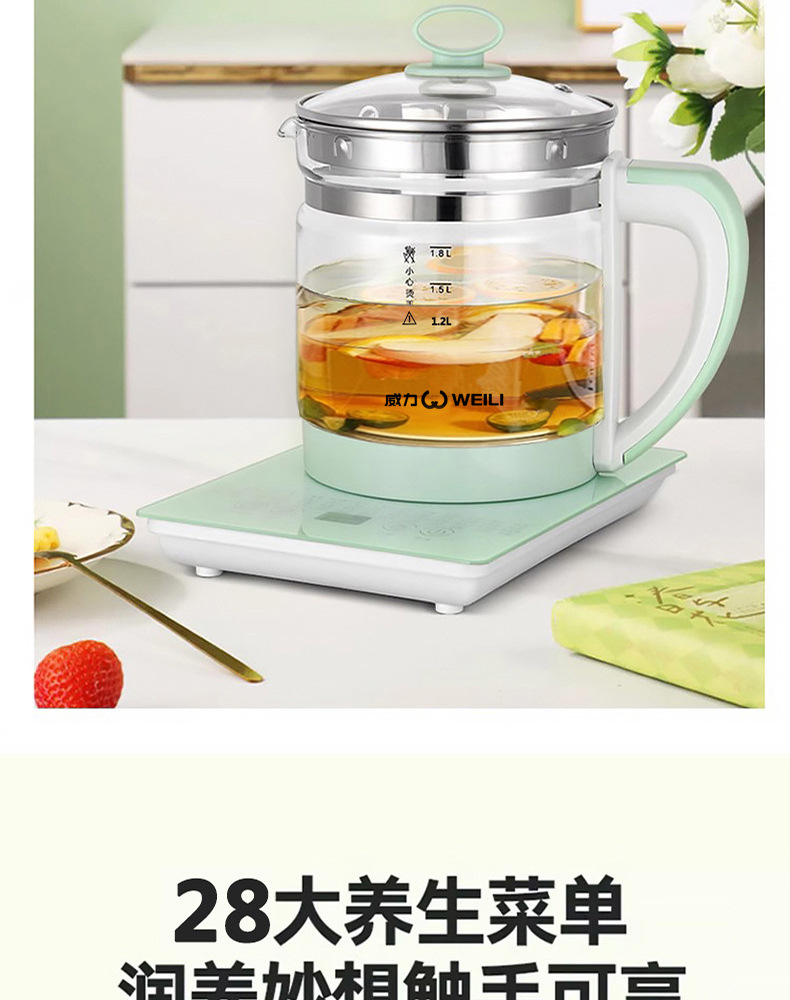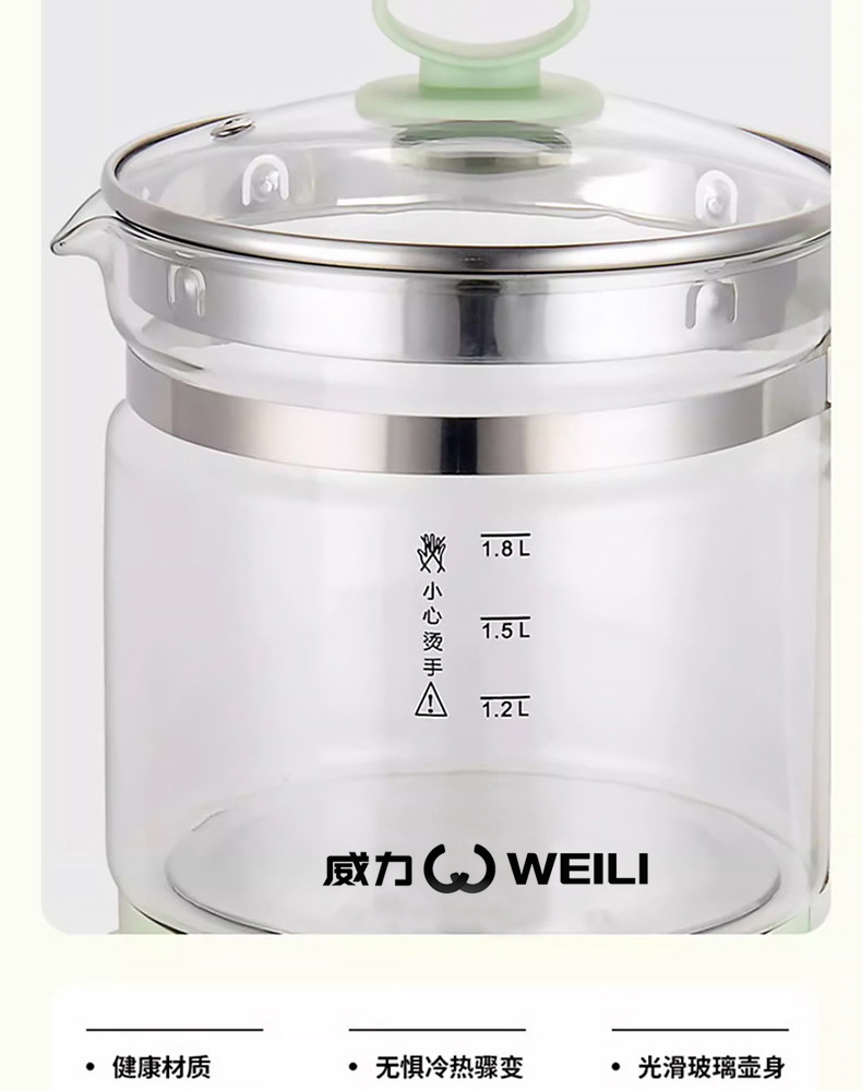 跨境威力养生壶家用多功能全玻璃煮茶器办公室智能花茶壶电热水壶