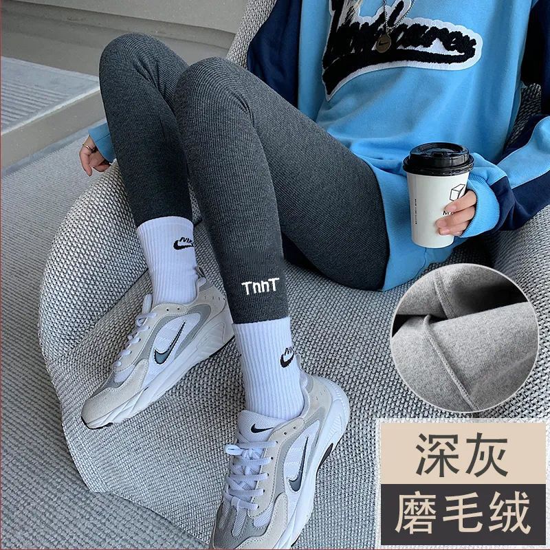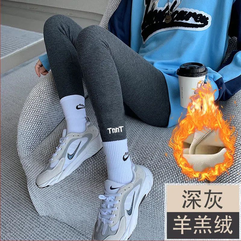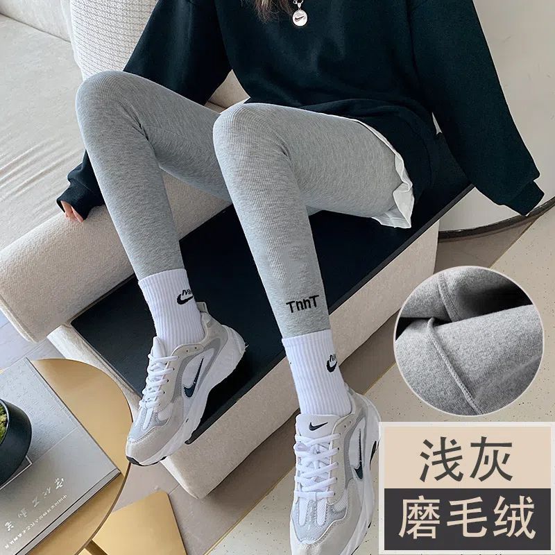 灰色螺纹打底裤女外穿春秋薄款内穿秋裤冬季加绒加厚弹力高腰显瘦