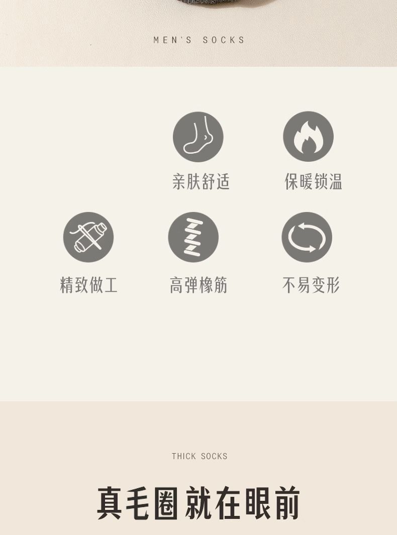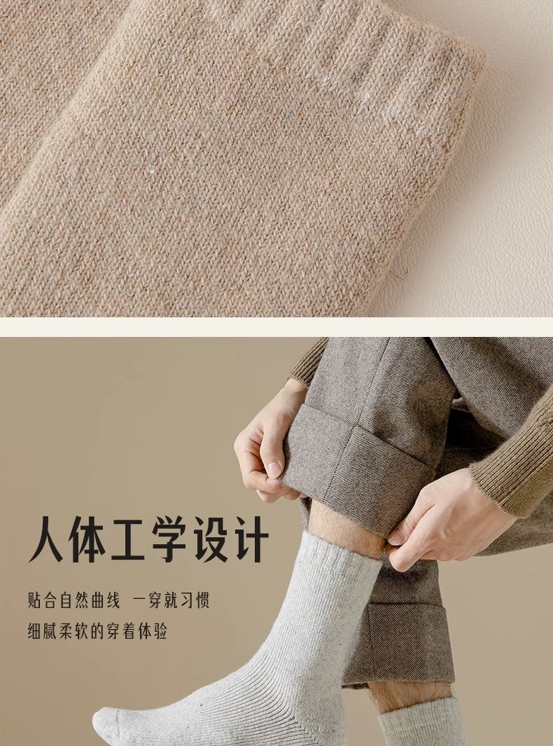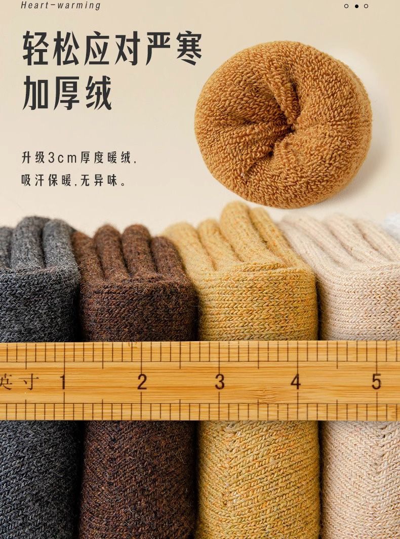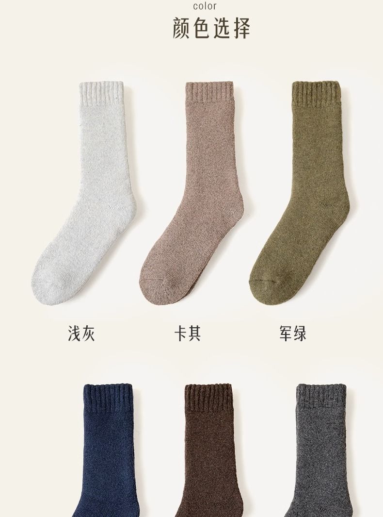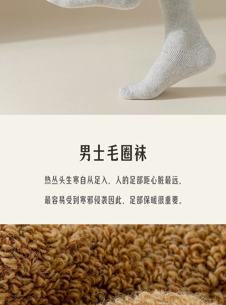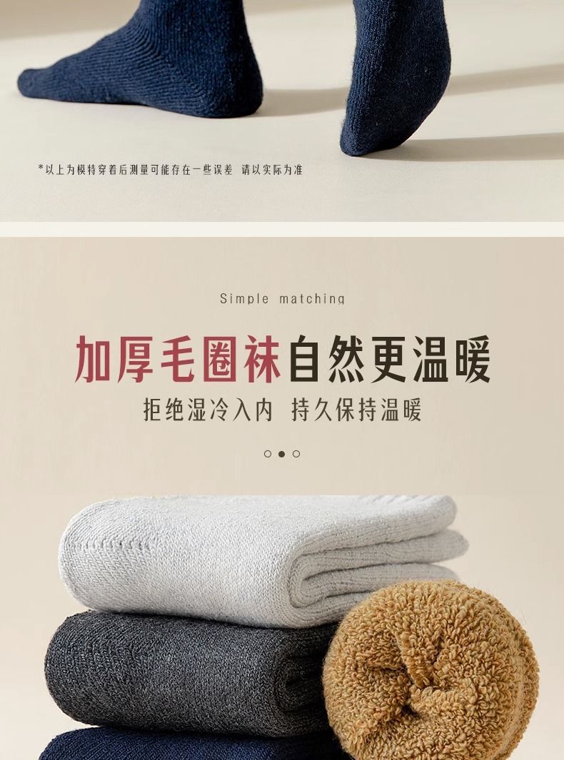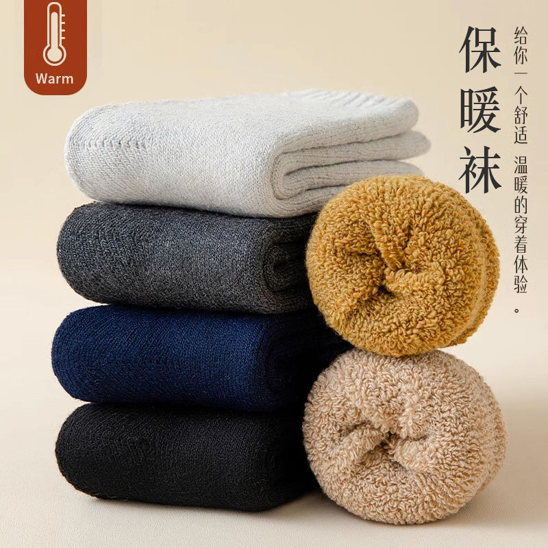 秋冬特厚加绒袜子男士中筒袜防臭冬天保暖毛袜子女冬季长筒毛圈袜