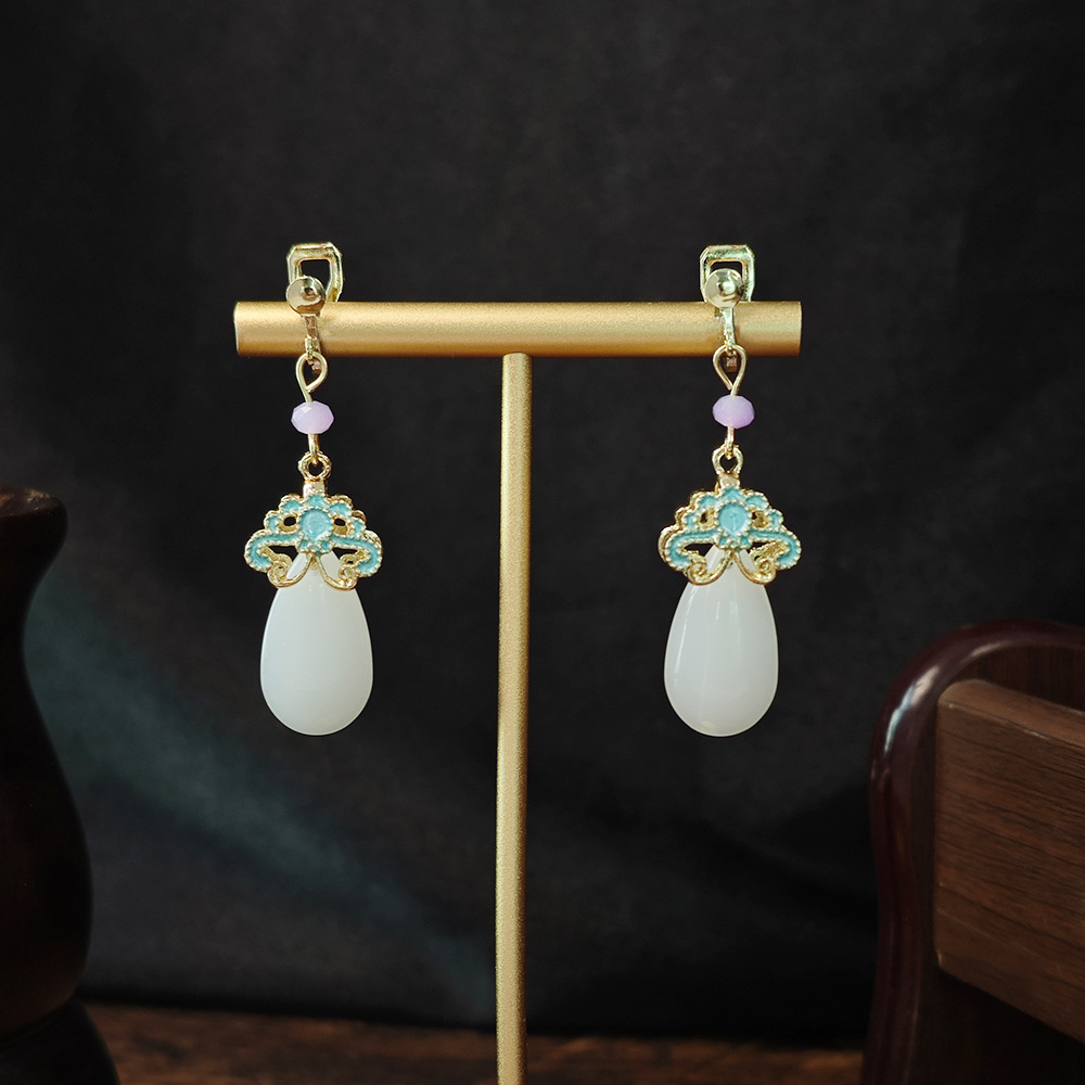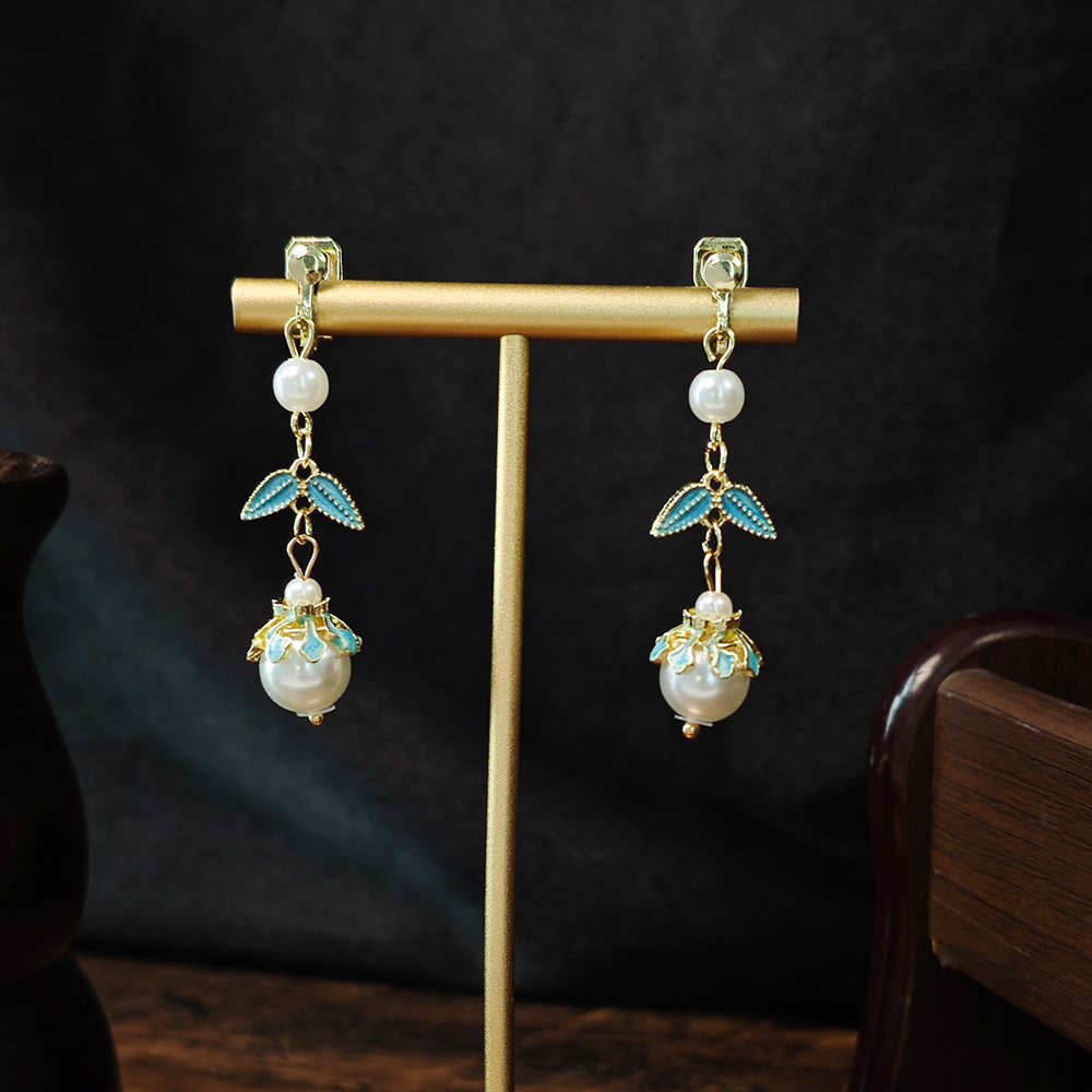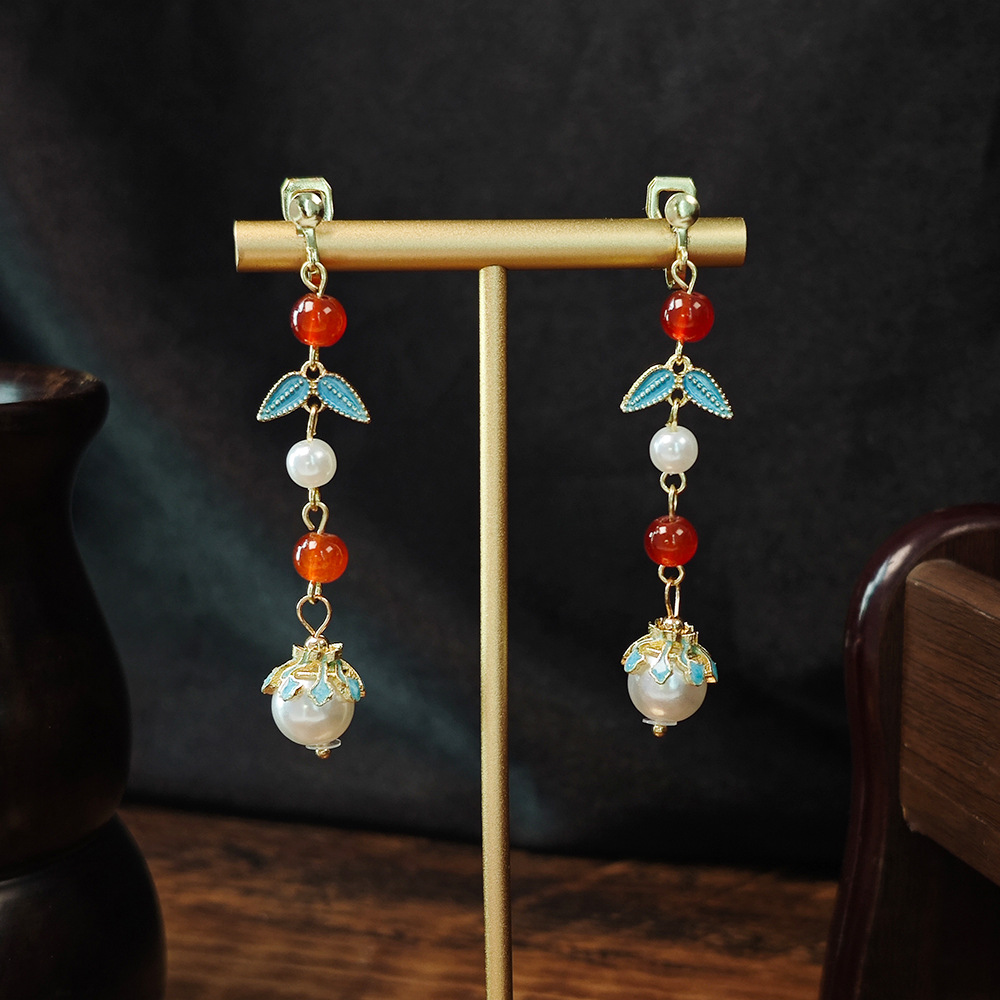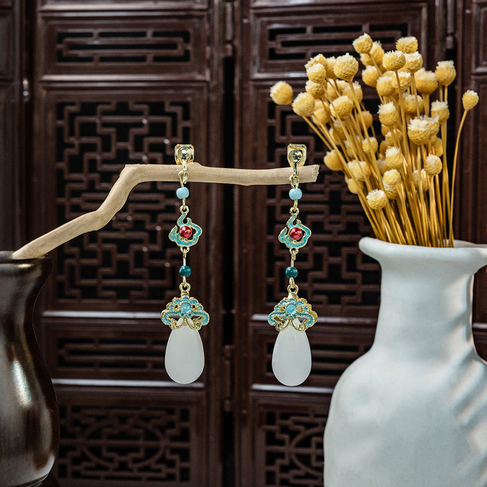 民族风耳饰水滴配饰无耳洞耳夹新中式古风串珠长款流苏珍珠耳环