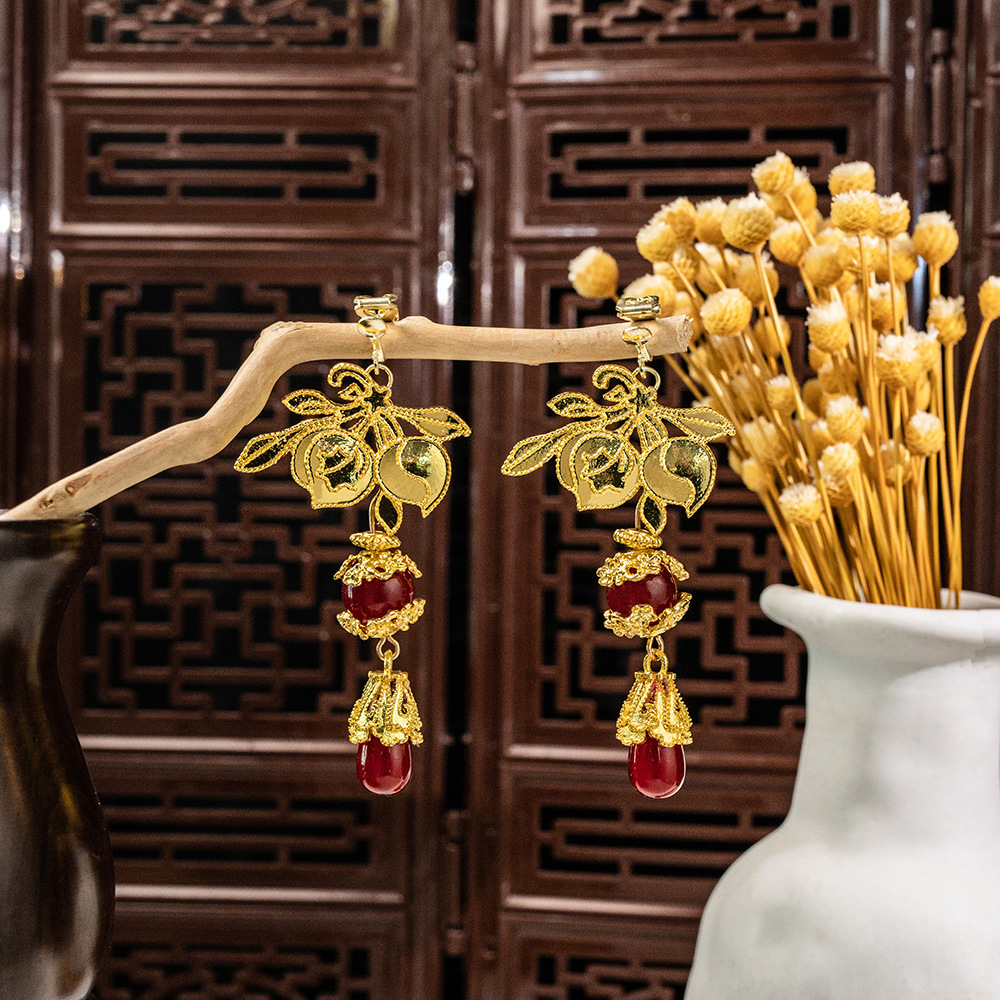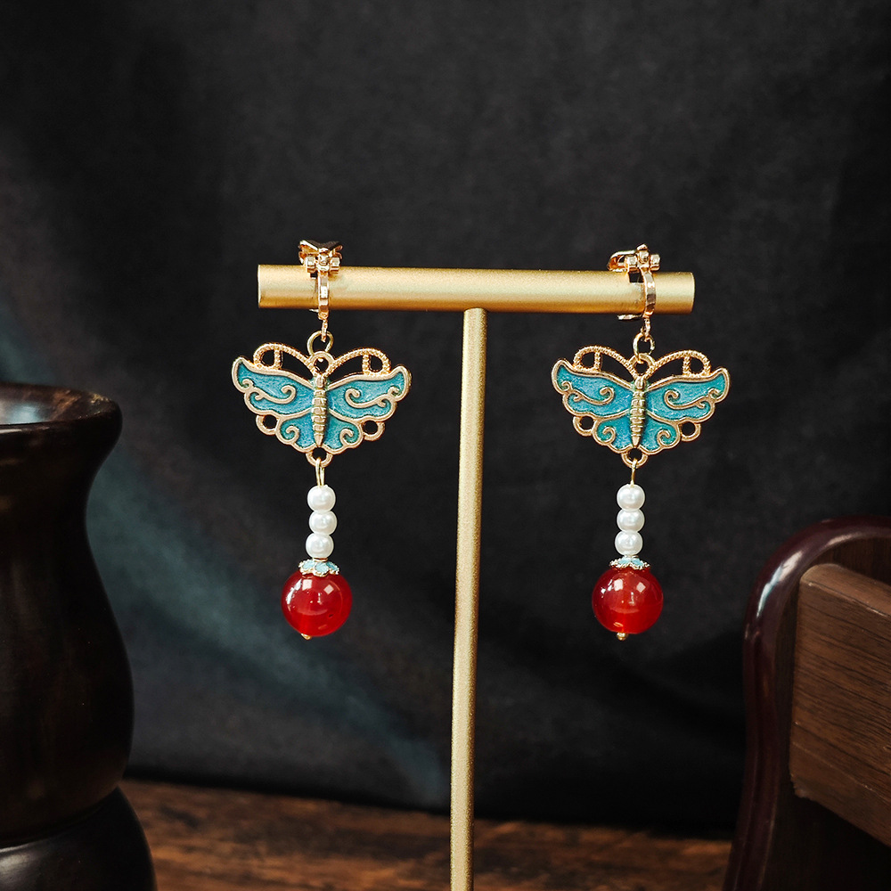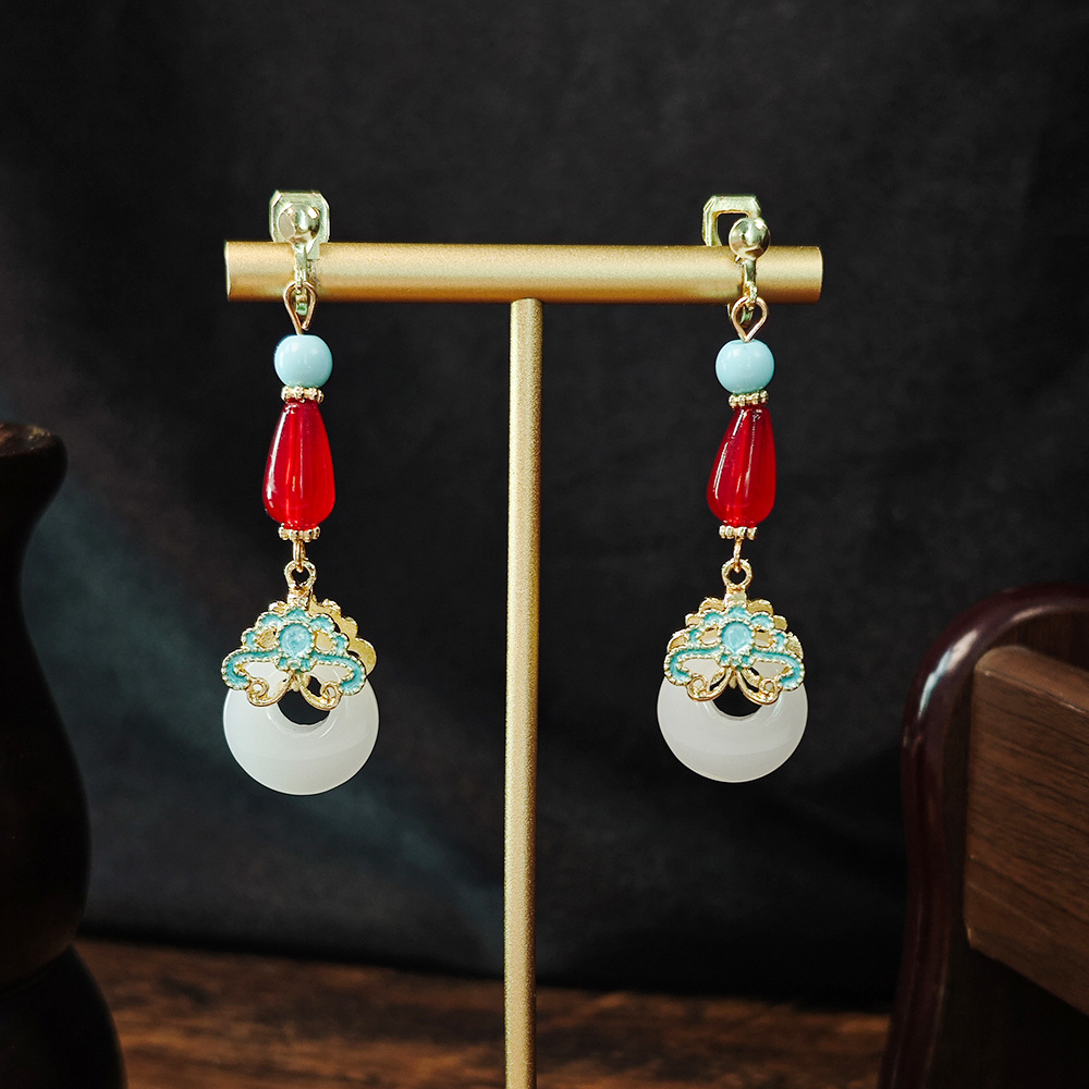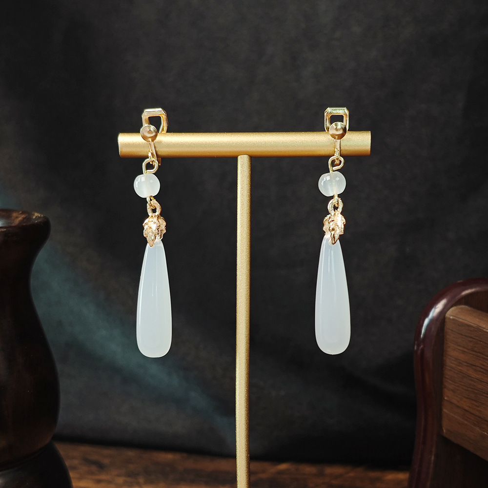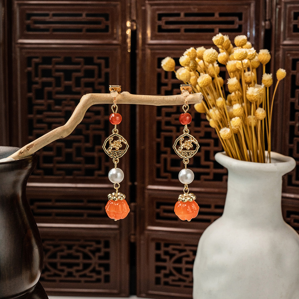 民族风耳饰水滴配饰无耳洞耳夹新中式古风串珠长款流苏珍珠耳环
