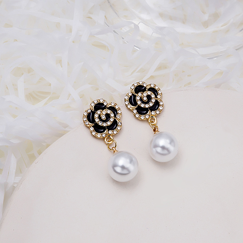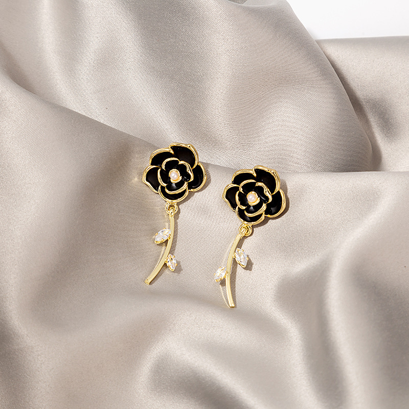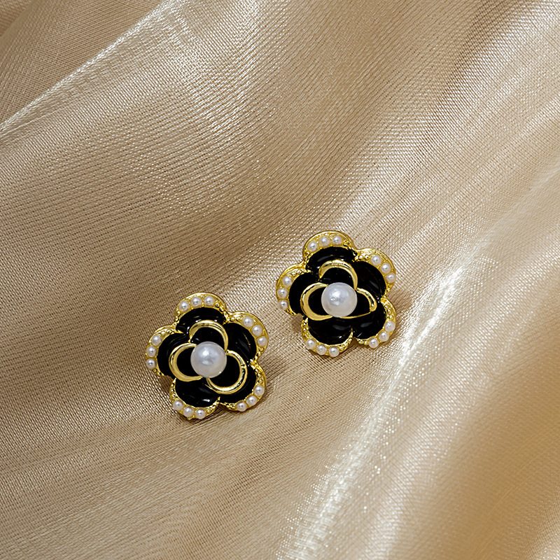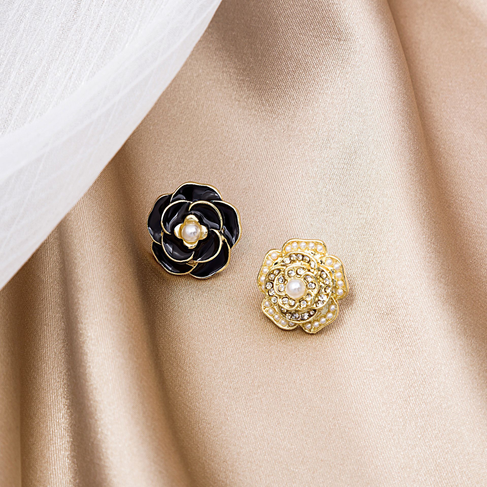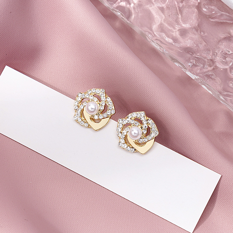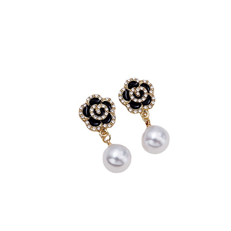 复古法式浪漫珍珠不对称山茶花耳钉银针小香风气质玫瑰花朵耳环