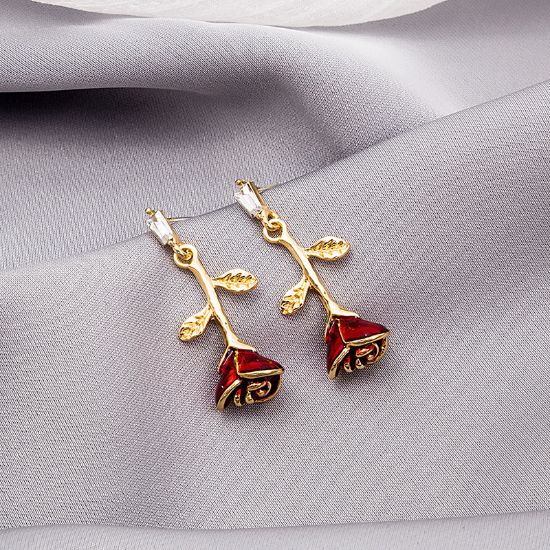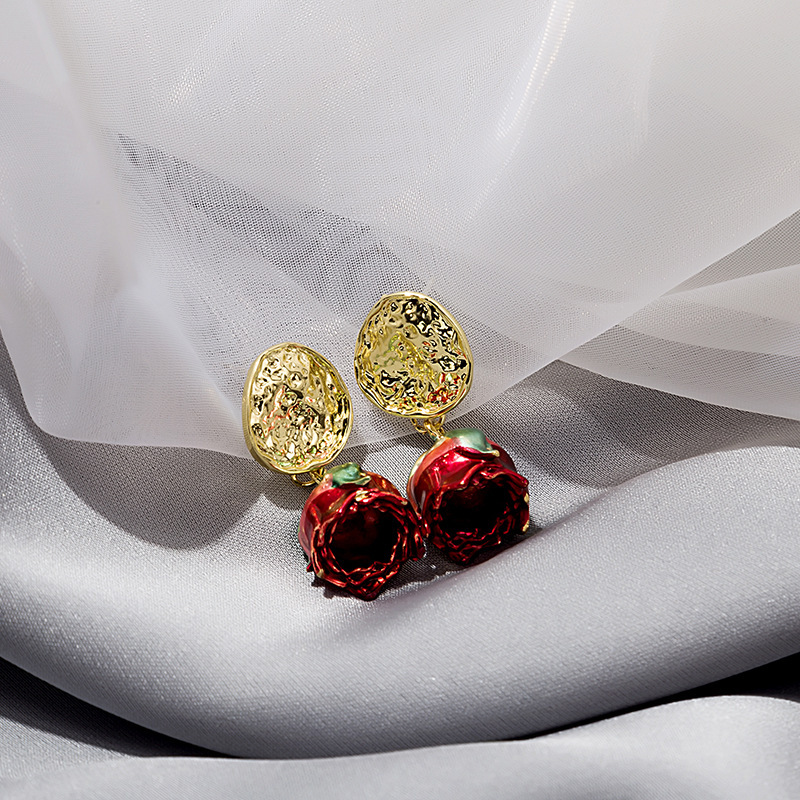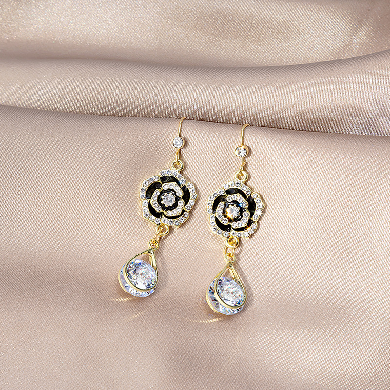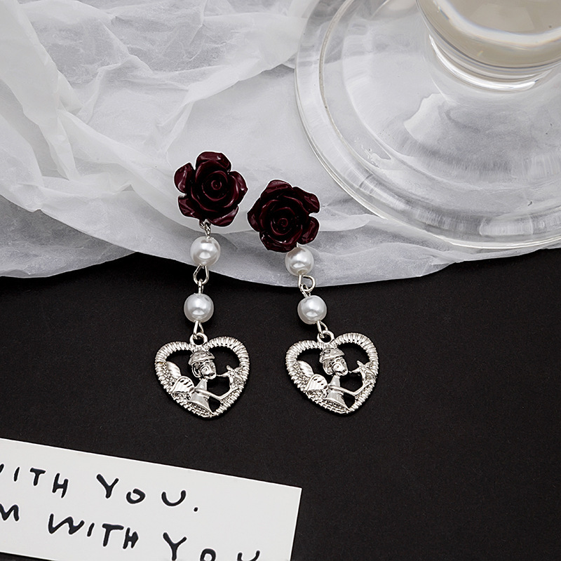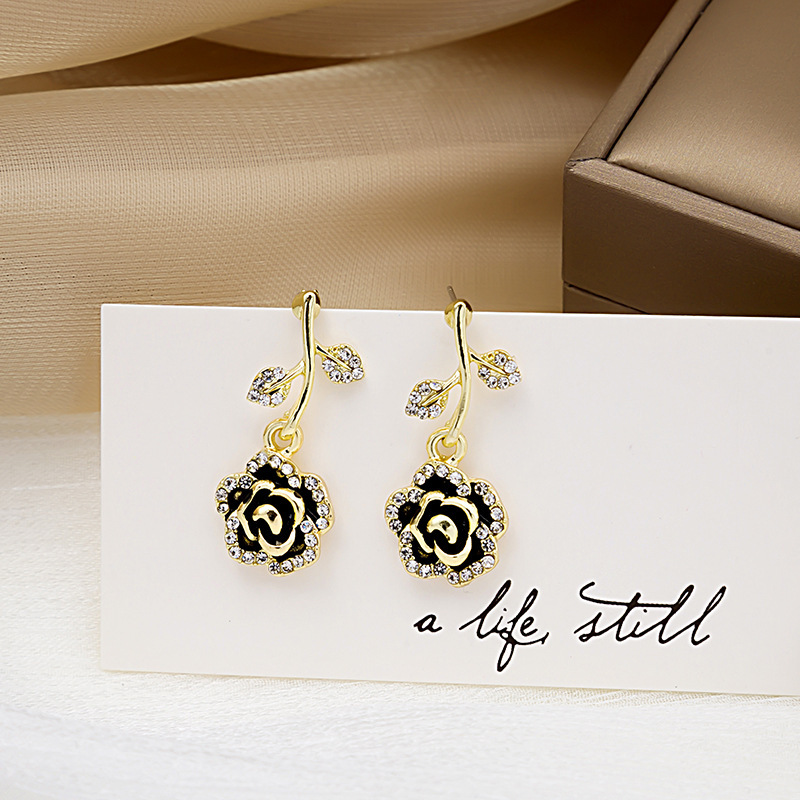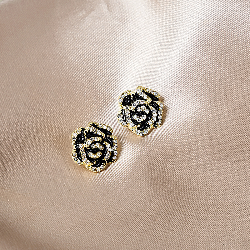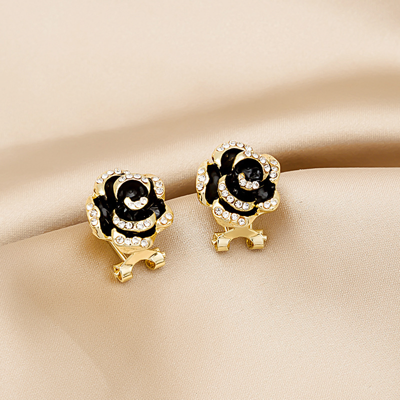 复古法式浪漫珍珠不对称山茶花耳钉银针小香风气质玫瑰花朵耳环
