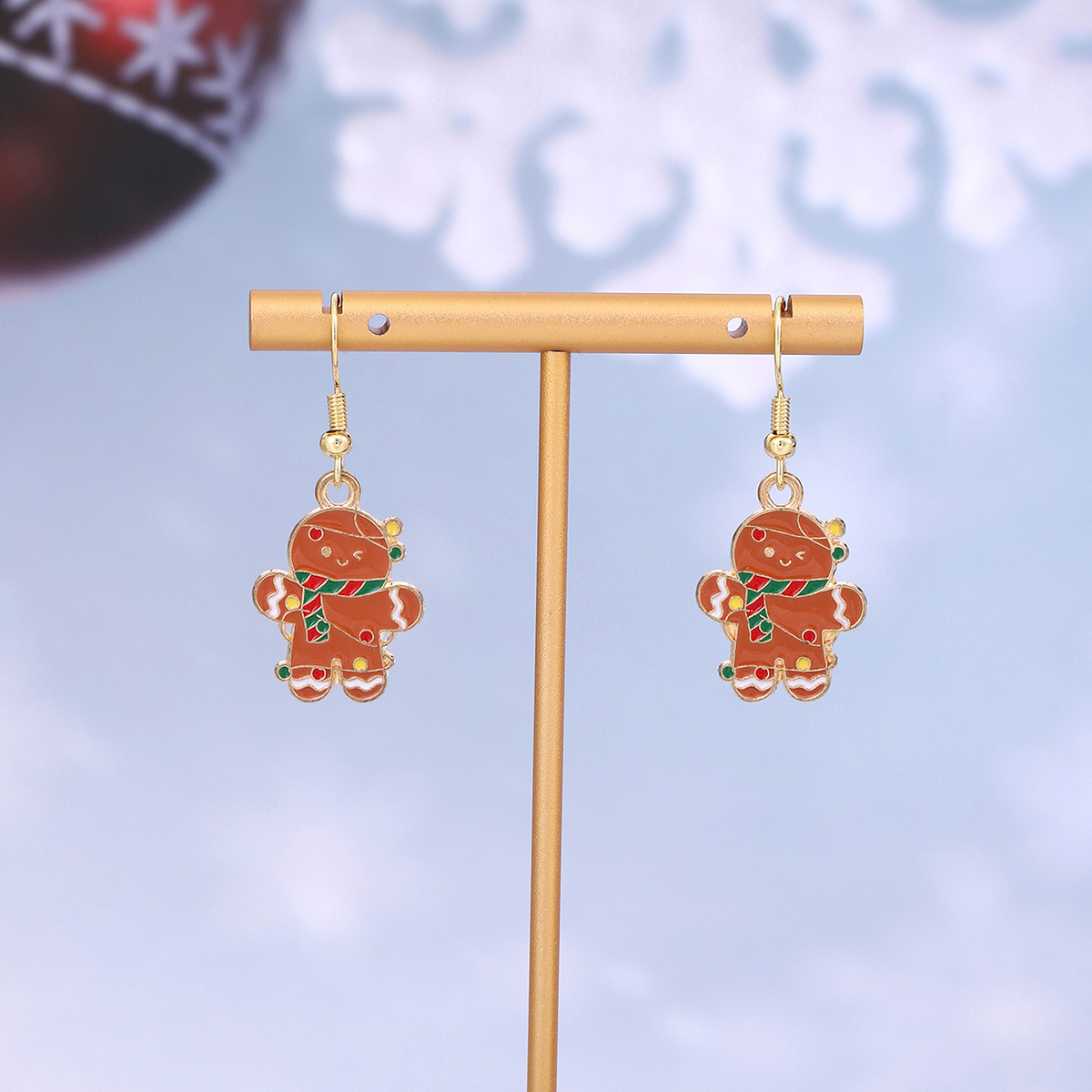 饰品个性圣诞节日系列麋鹿姜饼人耳饰欧美卡通滴油圣诞老人耳环