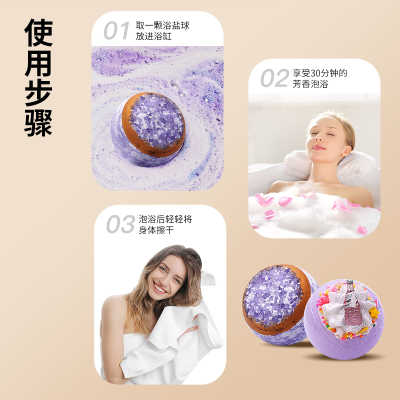 跨境干花玫瑰浴盐球100g爆炸盐泡脚沐浴球圣诞礼物玩具圆形泡澡球