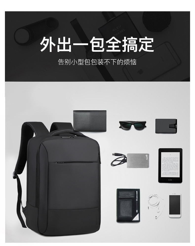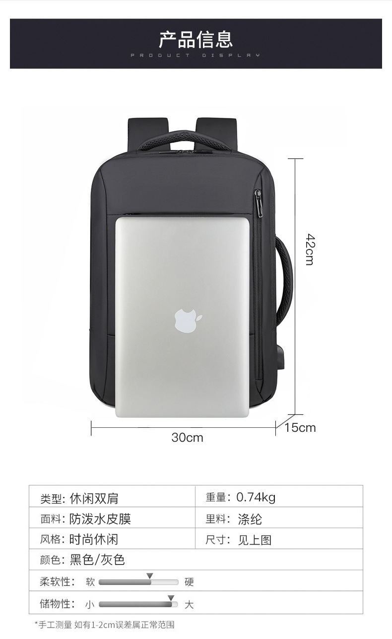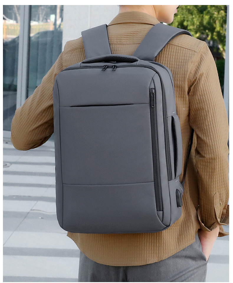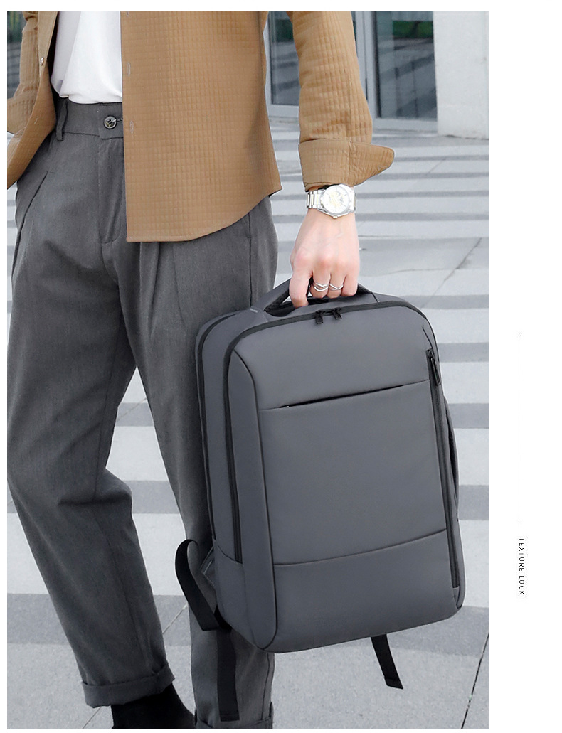商务通勤男士双肩包笔记本电脑包纯色男士背包