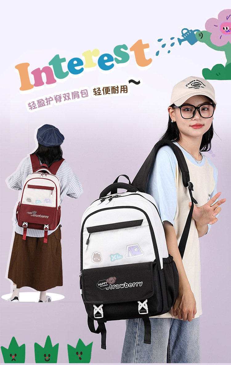 时尚潮流书包女生校园通勤双肩包简约撞色户外旅行背包