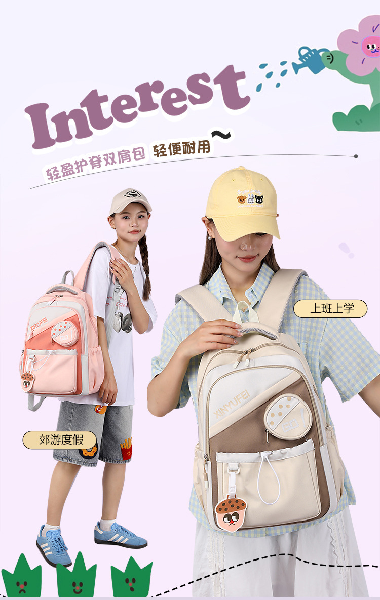休闲初高中大学生书包户外旅行背包女士简约潮流双肩包