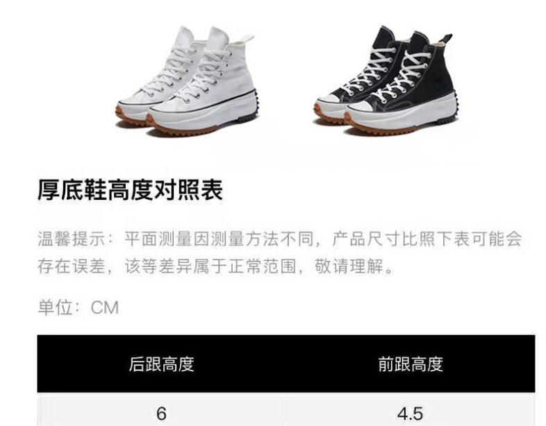 新款 RunstarHike同款厚底松糕鞋高帮帆布鞋男女情侣鞋
