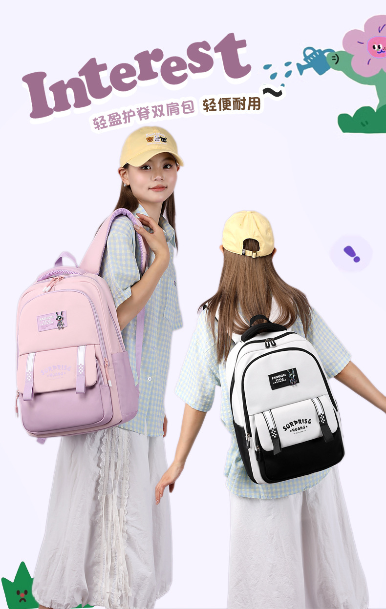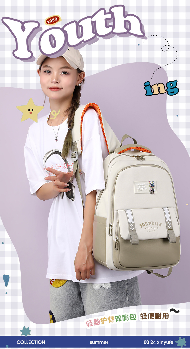中学生书包2024新款简约时尚大学生双肩包户外休闲旅行背包