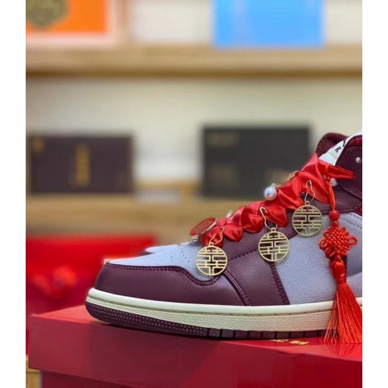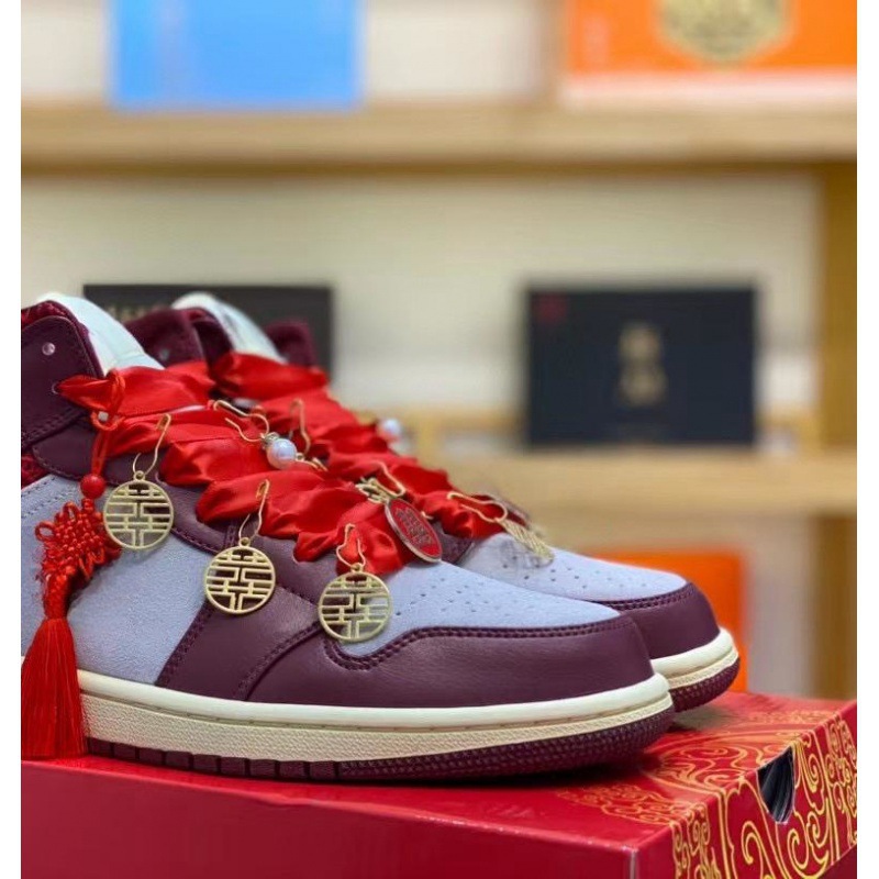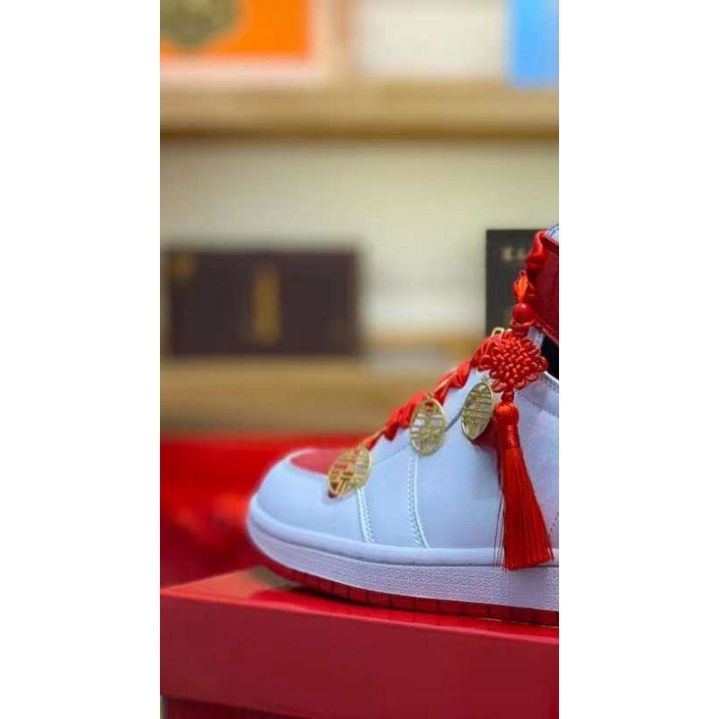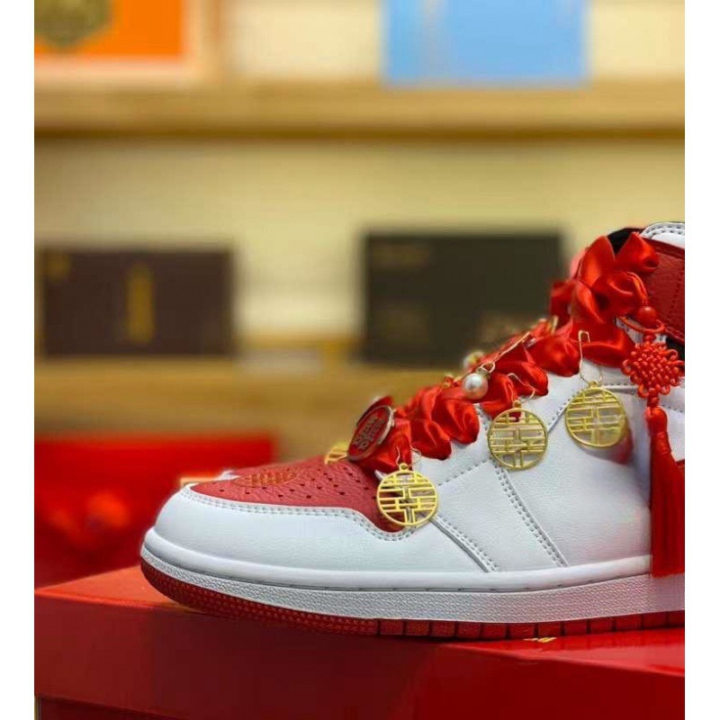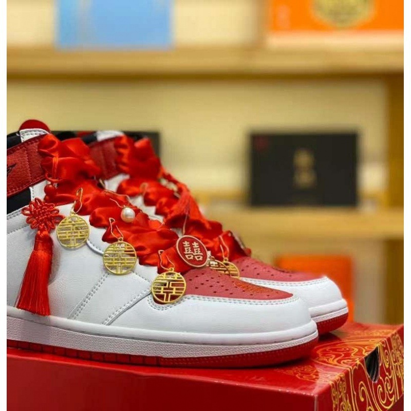 莆田鞋AJ1高帮白红婚鞋 情侣运动鞋红色装饰配饰好看喜庆