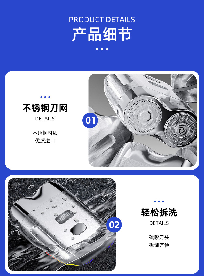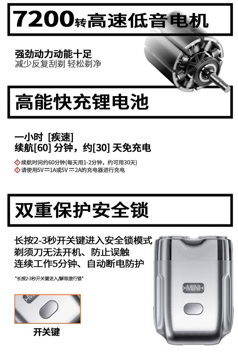 新款3D浮动双刀头剃须刀电动刮胡刀便携式剃胡刀车载剃须刀