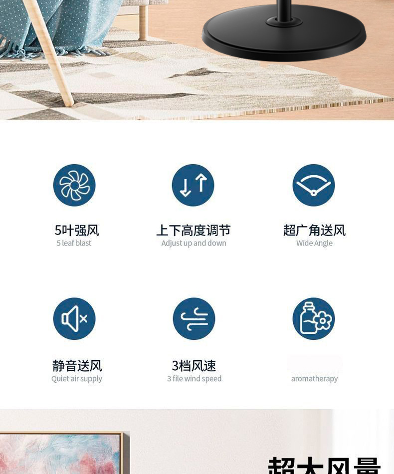 电风扇落地扇家用大风力台立式强力节能摇头音静五叶电扇宿舍风扇