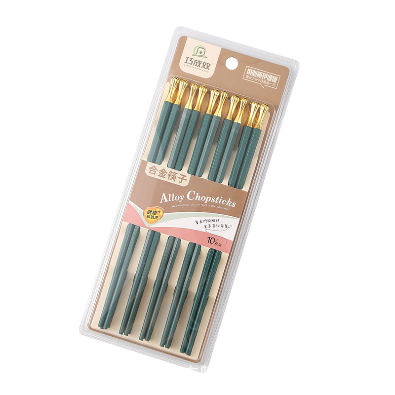 合金筷子家用10双装世界杯绿耐高温不发霉防滑套装酒店餐厅批发