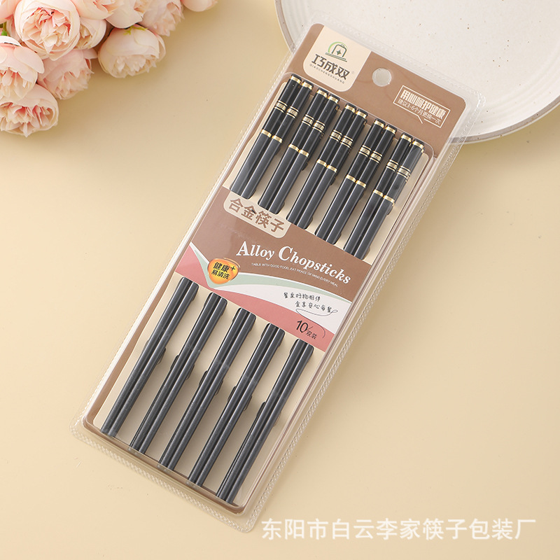合金筷子家用10双装金长城耐高温不发霉防滑套装酒店餐厅批发