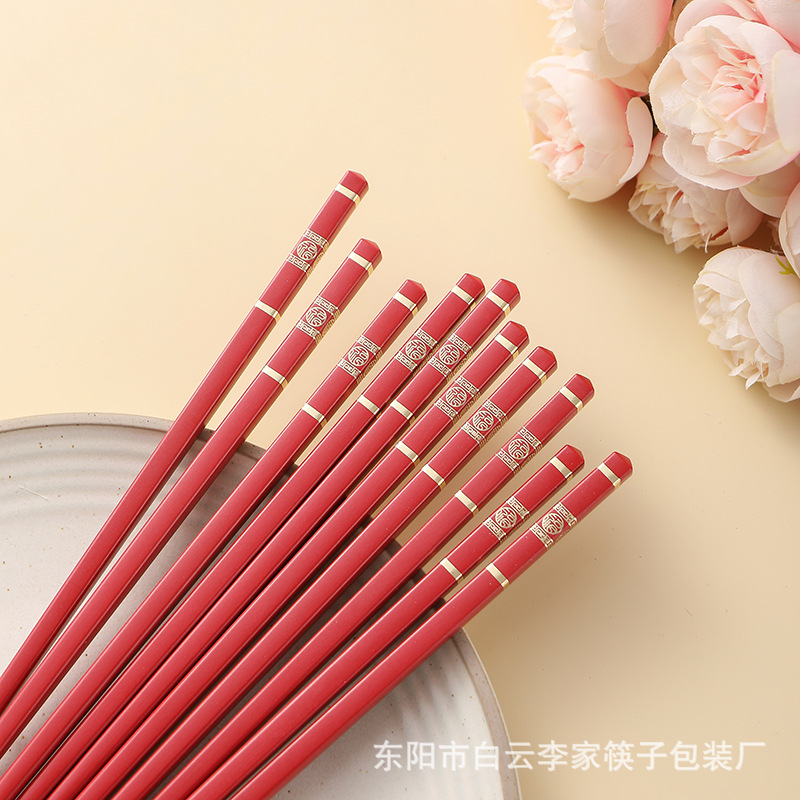 喜庆红色合金筷子家用10双装锦灯福高档耐高温不发霉套装餐厅批发