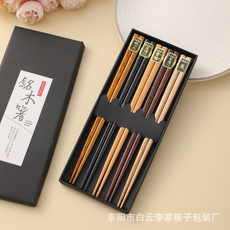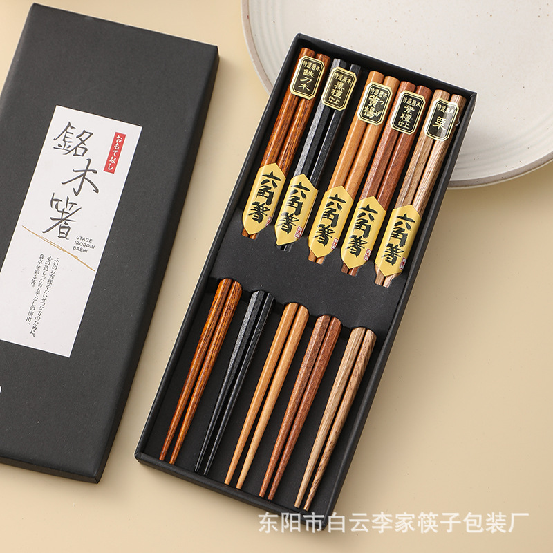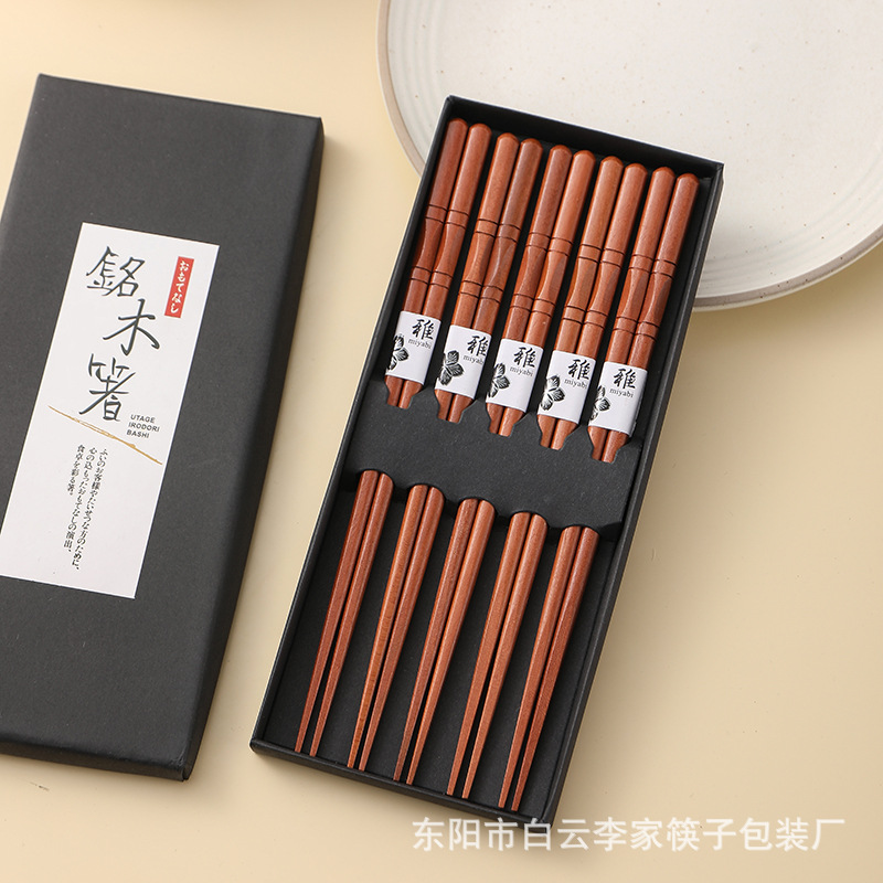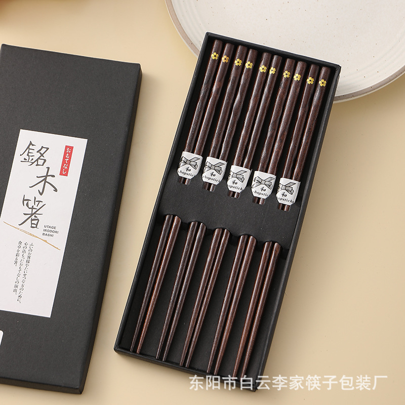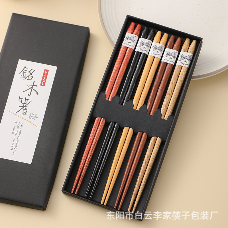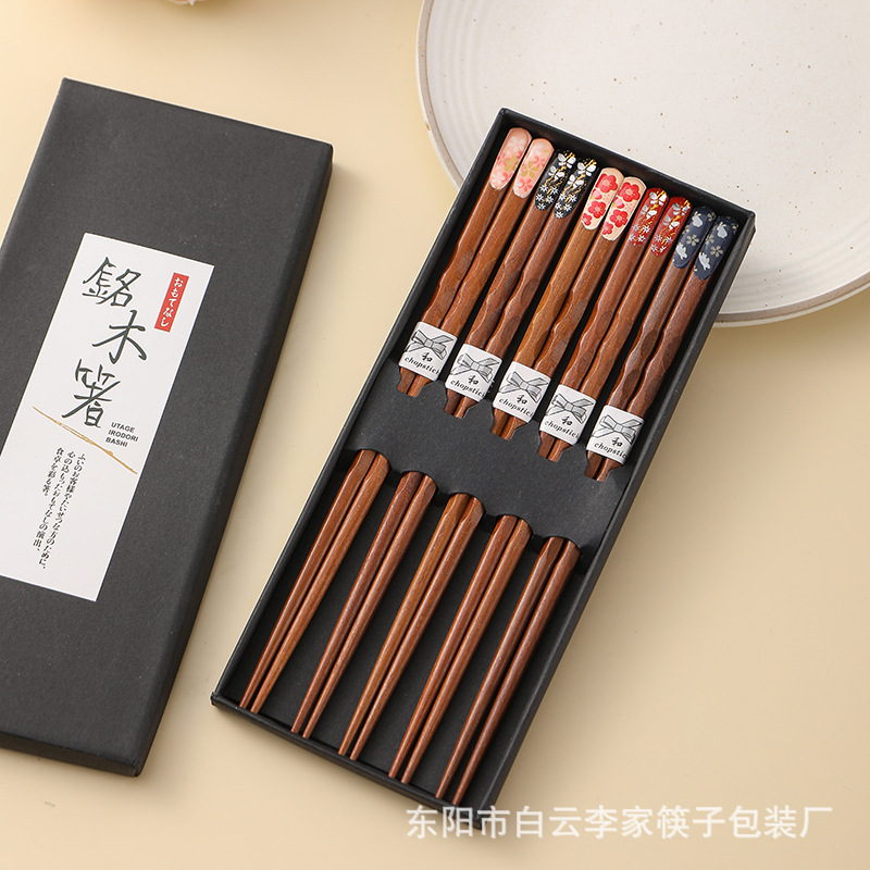 日式五木筷子樱花指甲龟甲螺纹工艺筷5双套装亚马逊跨境实木快子