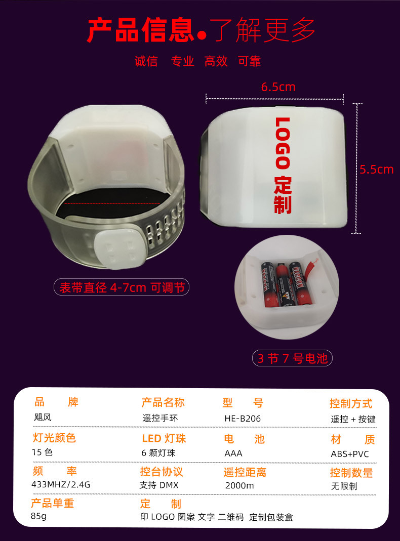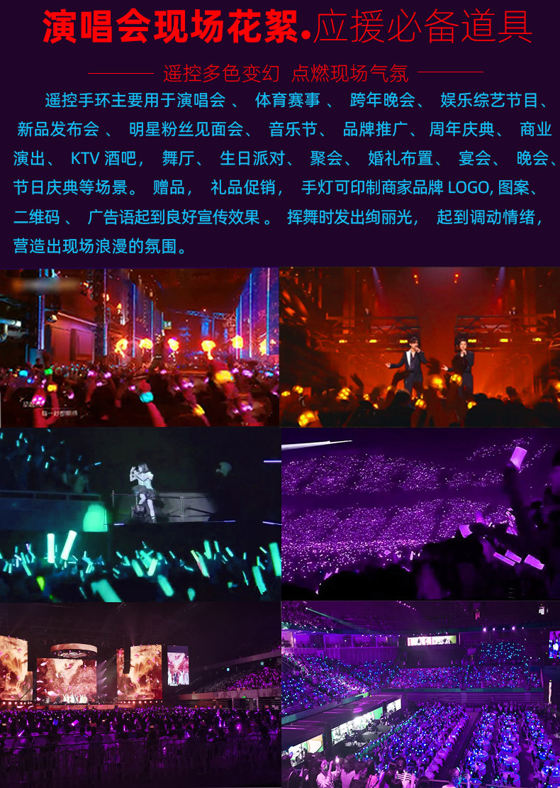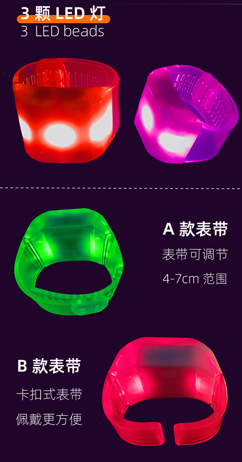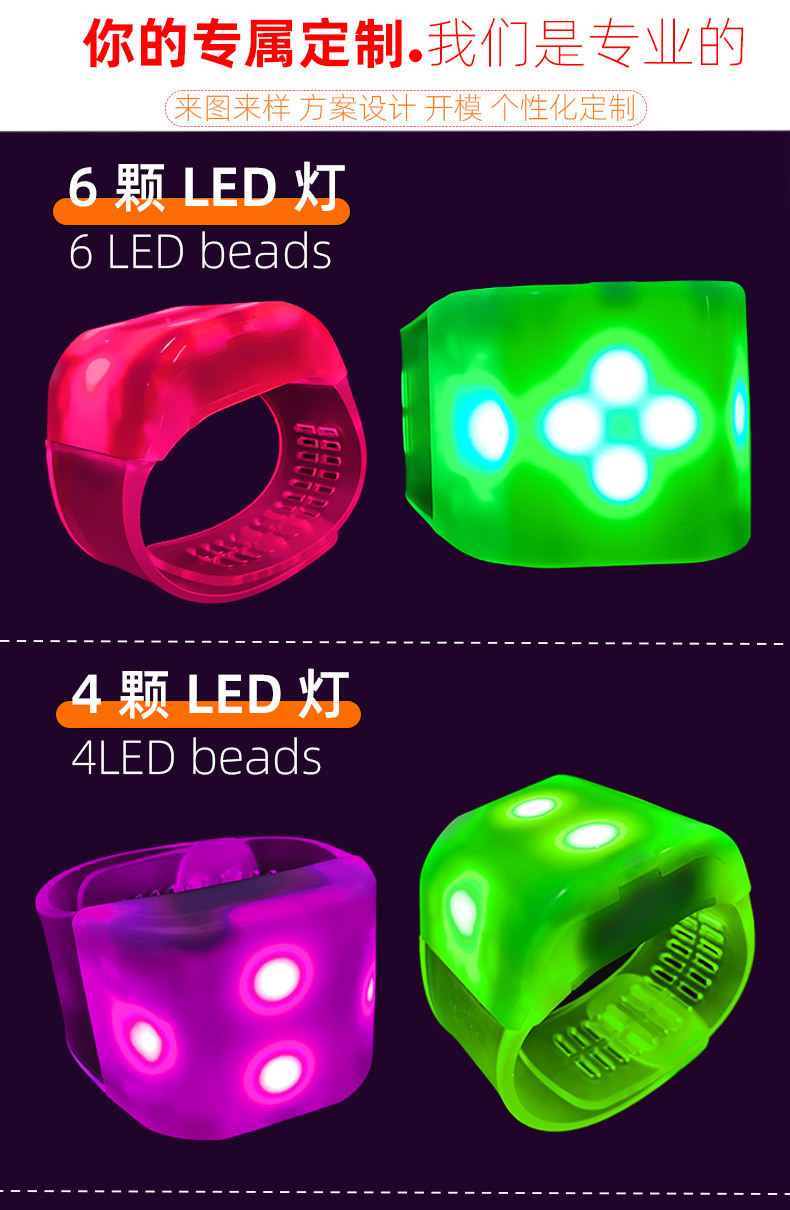 工厂批发演唱会应援发光手环6颗灯节庆运动会433遥控手环气氛道具