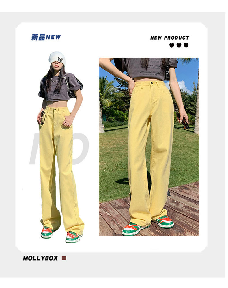 多巴胺牛仔裤女春秋款彩色时尚休闲高腰宽松遮肉直筒拖地阔腿长裤