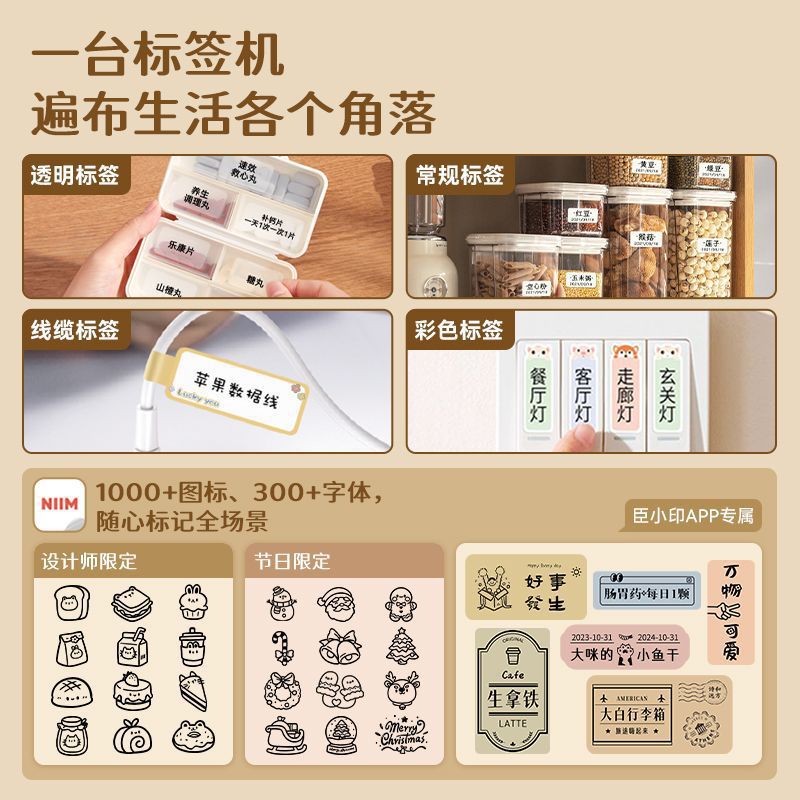 蓝牙标签标签机手持便携打印机家用便利贴纸D110迷你热敏智能