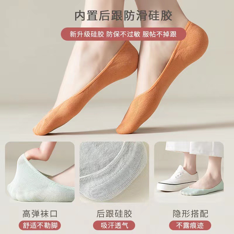 船袜夏季女生不掉跟新款超浅口薄款隐形纯色透气硅胶防滑日系袜子