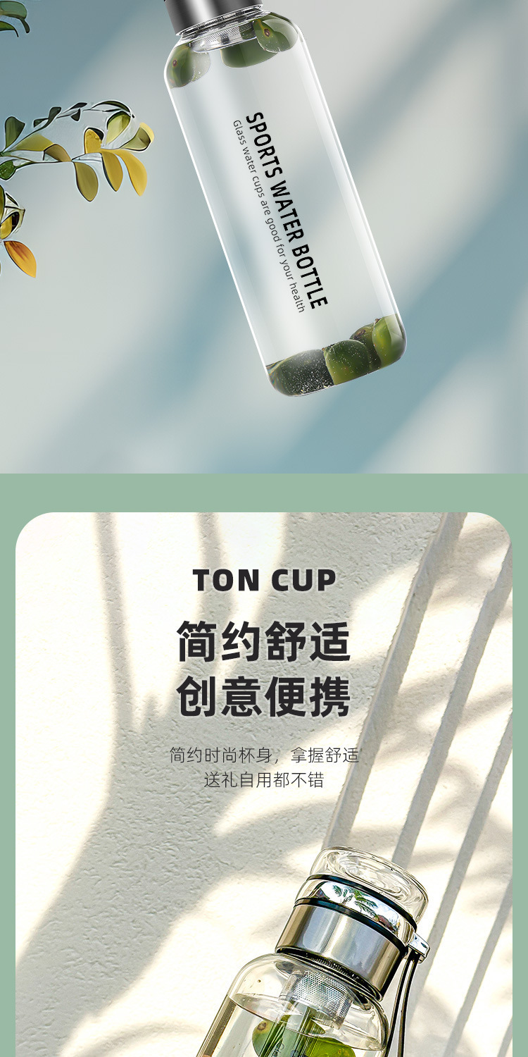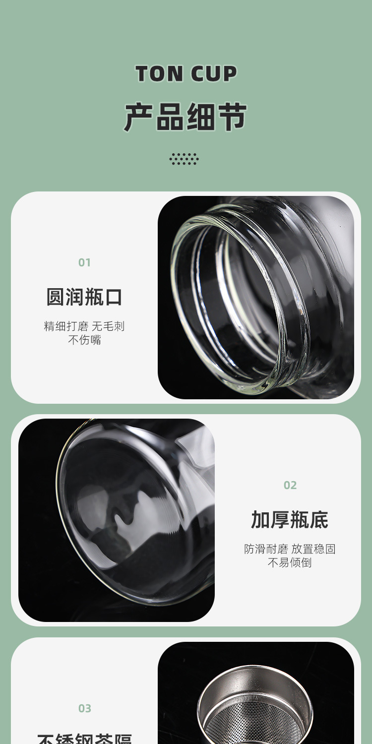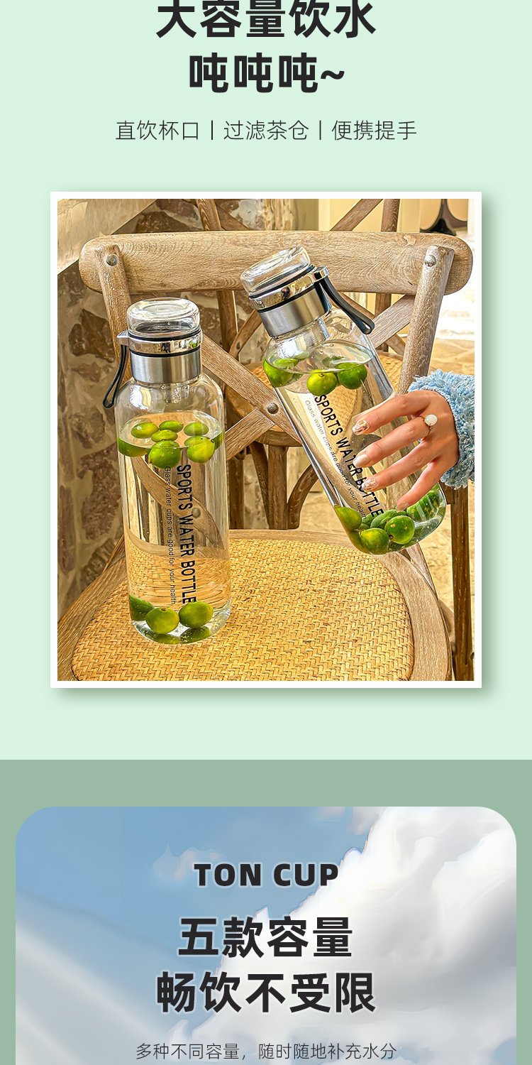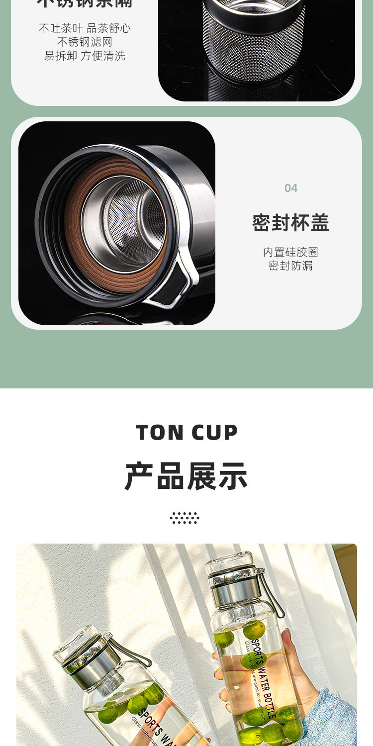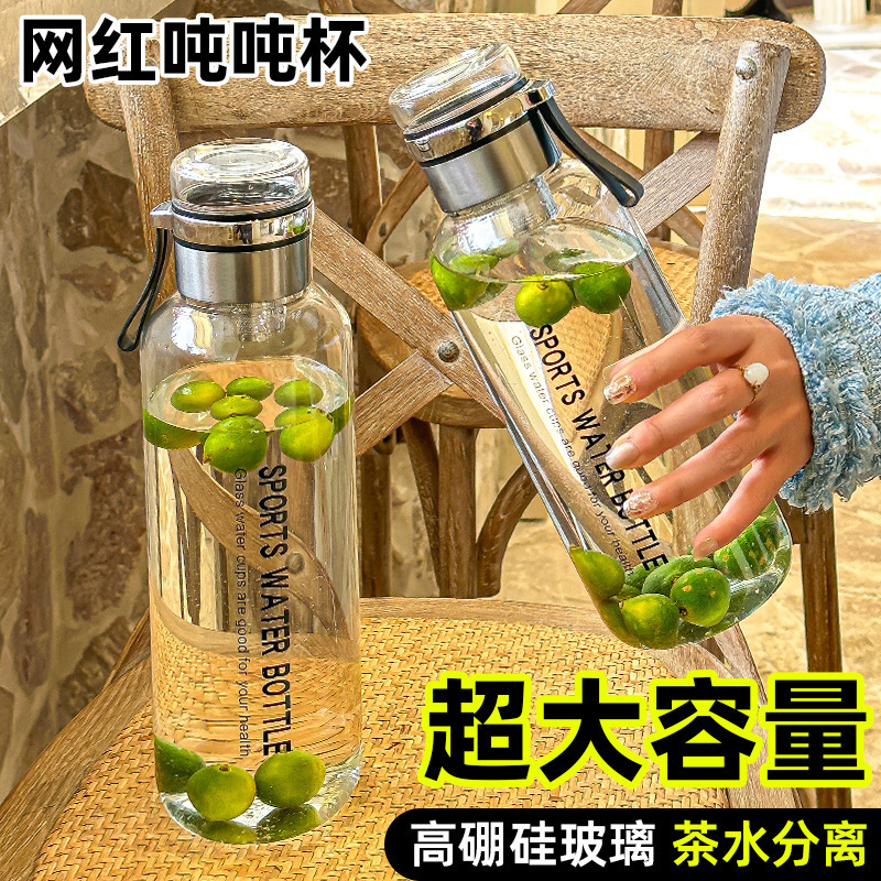 高颜值夏季茶水分离杯便携式大容量玻璃杯吨吨杯男女防烫水杯