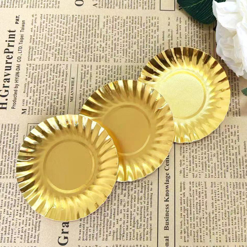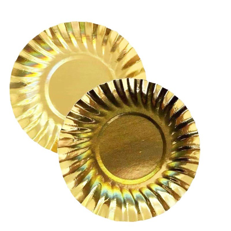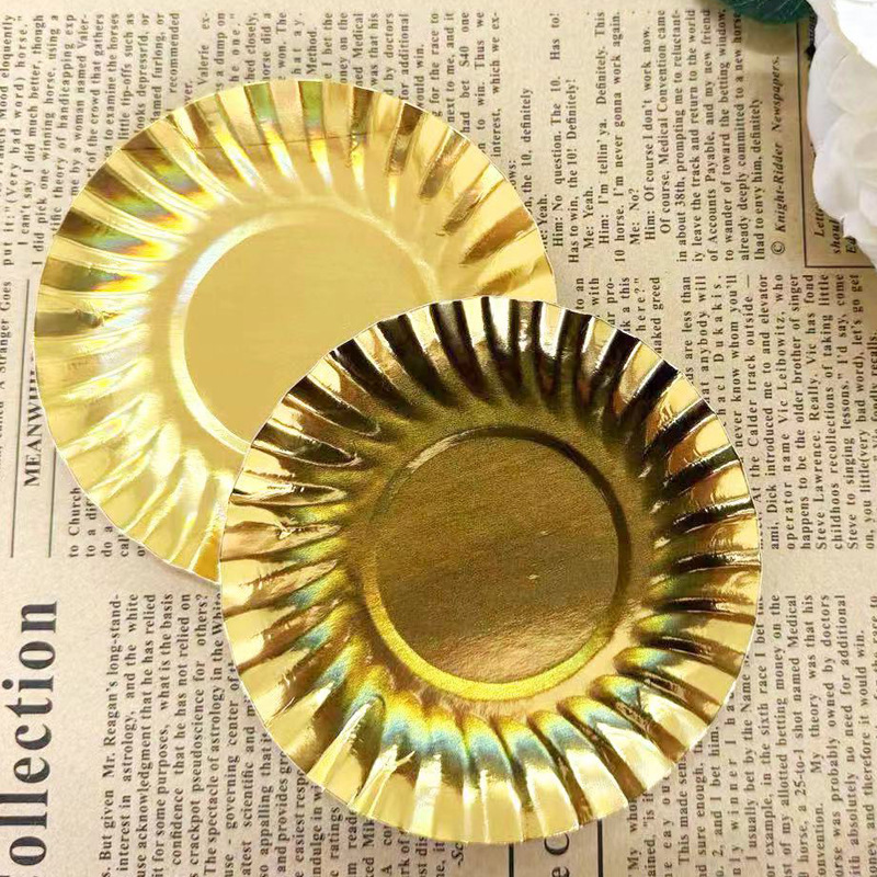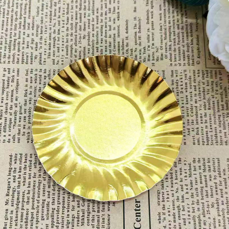 一次性纸盘覆膜金色盘子巧克力纸盘花边圆形纸盘蛋糕纸盘点心纸盘
