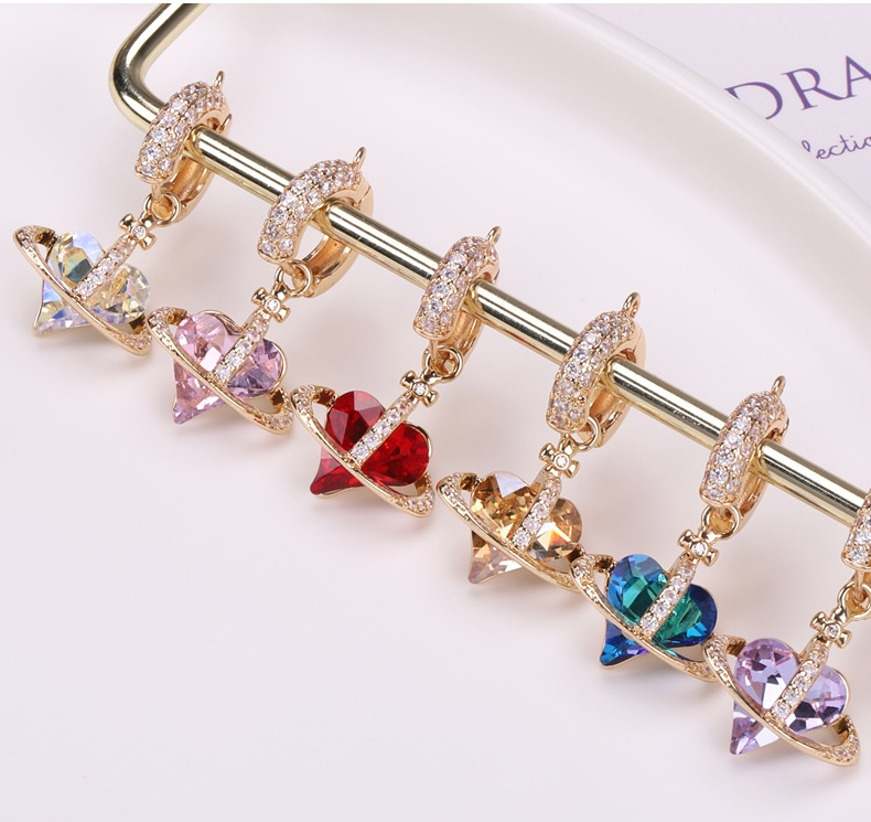 时尚创意星球土星环项链爱心桃心吊坠耳饰耳环项饰跨境新DIY饰品