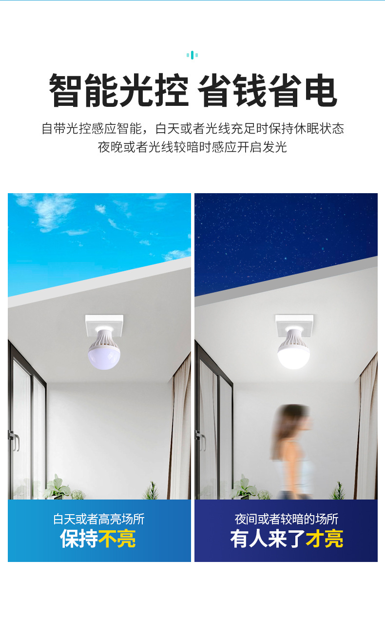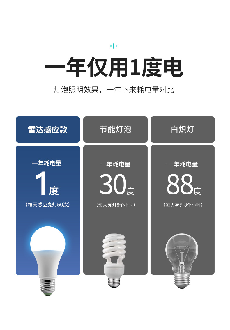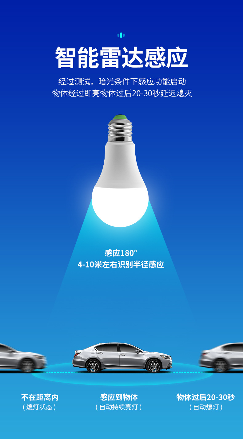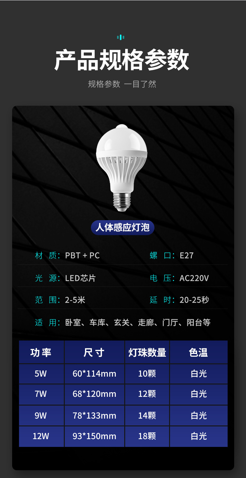 led球泡灯5W 楼梯过道人体感应灯智能声光控灯泡高亮螺口室内照明