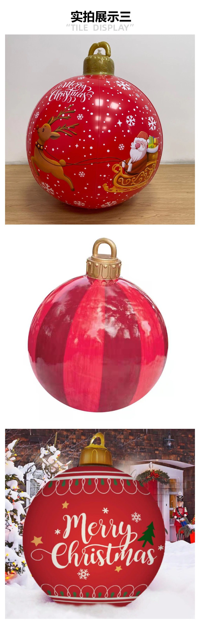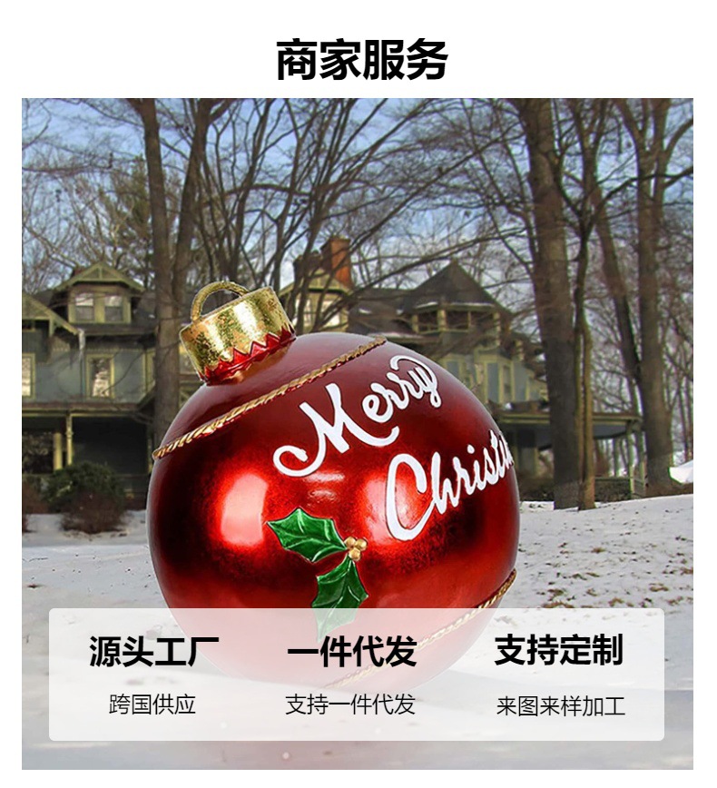 跨境现货圣诞装饰品60cm充气圣诞球christmas发光球圣诞节装饰