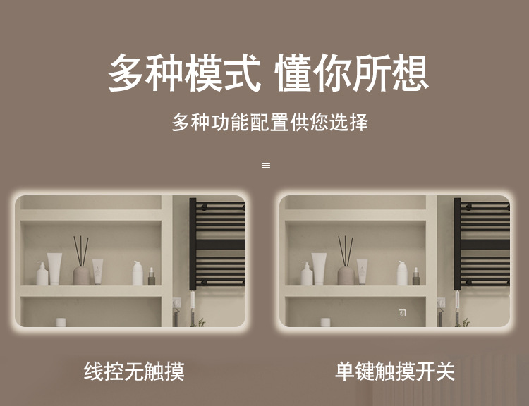 智能浴室镜家用挂墙式卫生间镜子壁挂带灯触摸屏防雾洗手间化妆镜