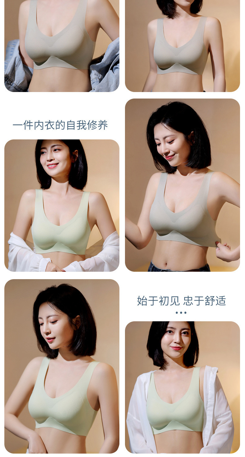 冰丝无痕一体式全固定杯内衣透气孔聚拢上托防下垂无钢圈文胸罩女