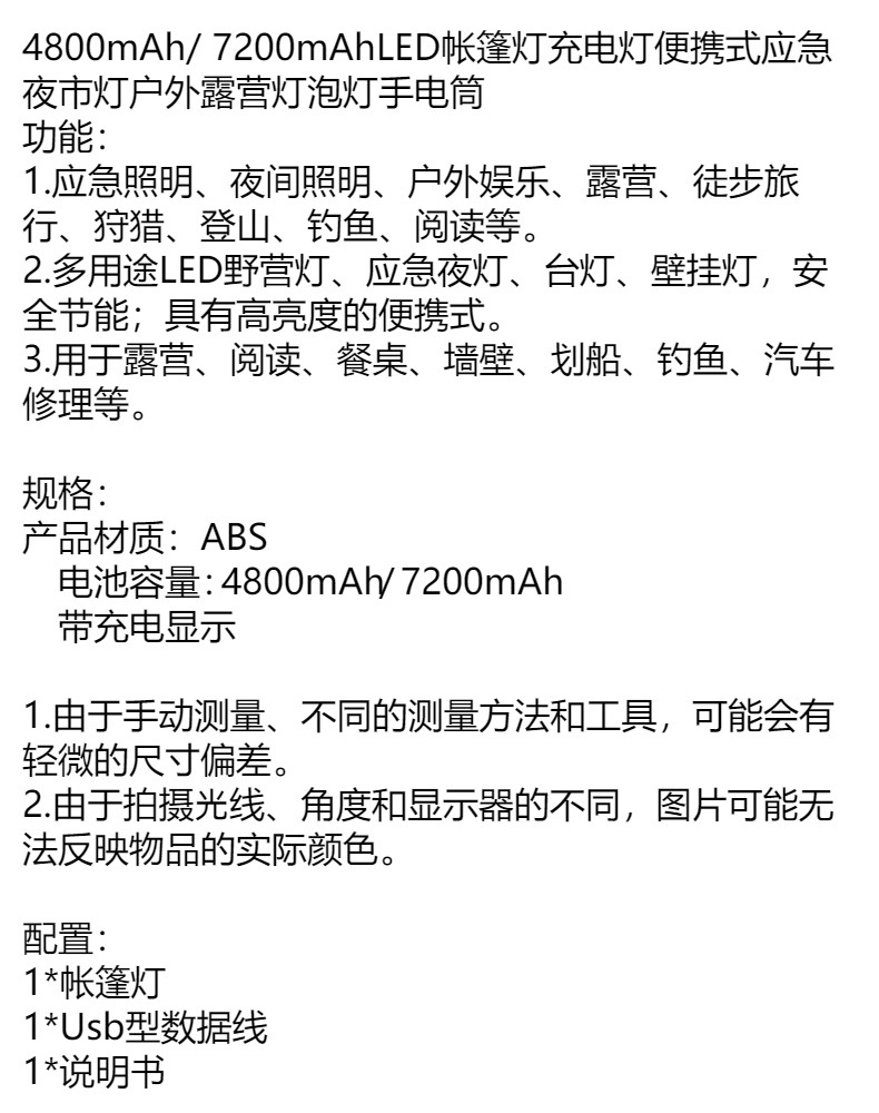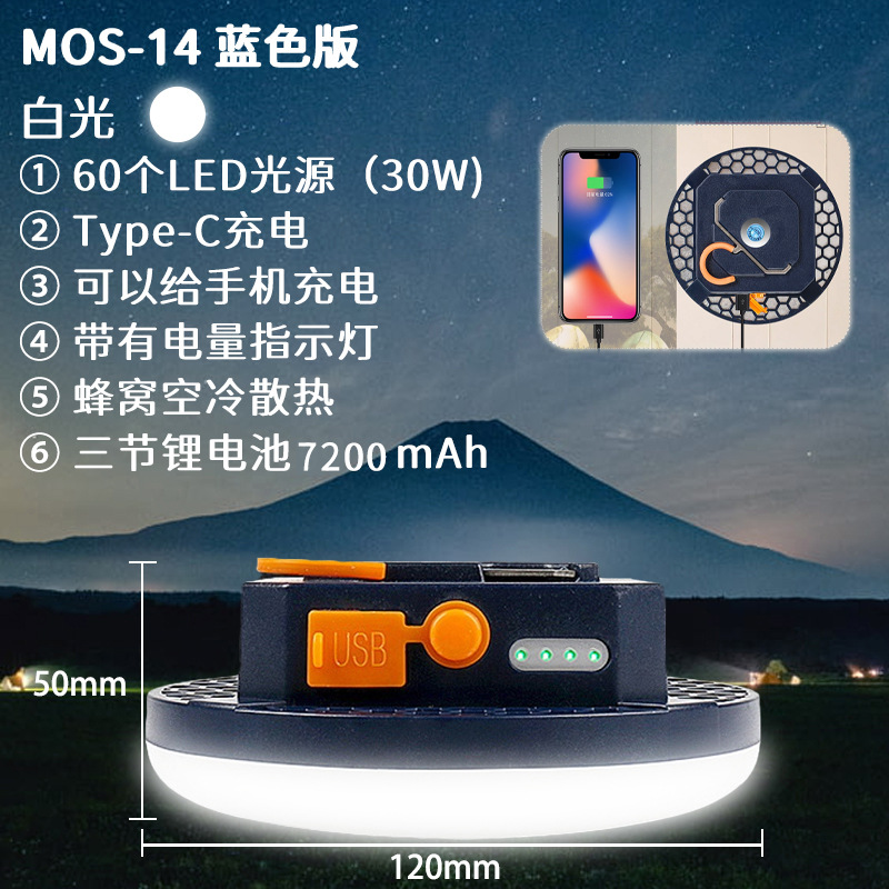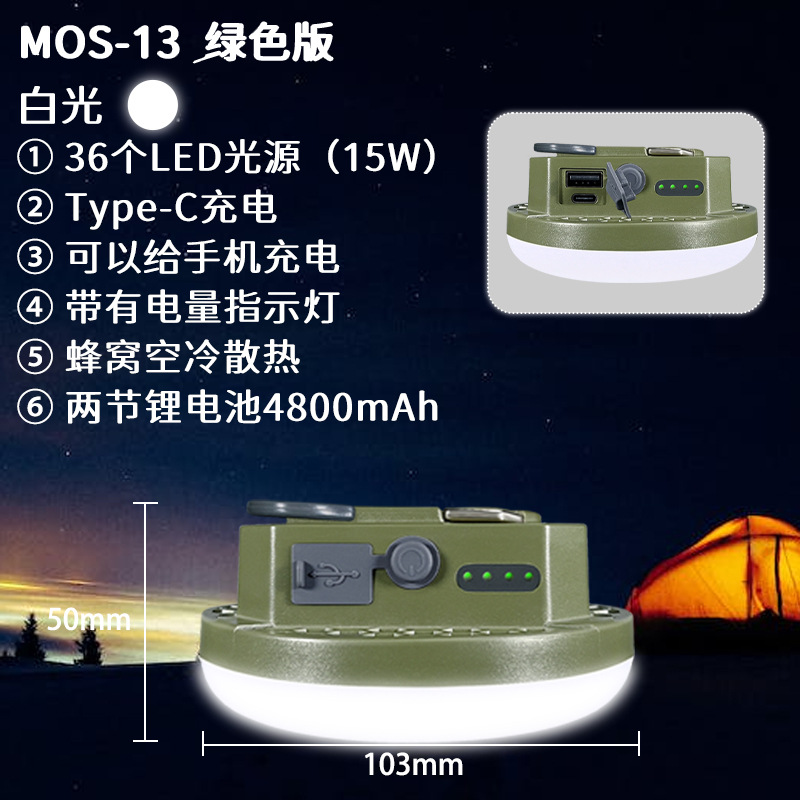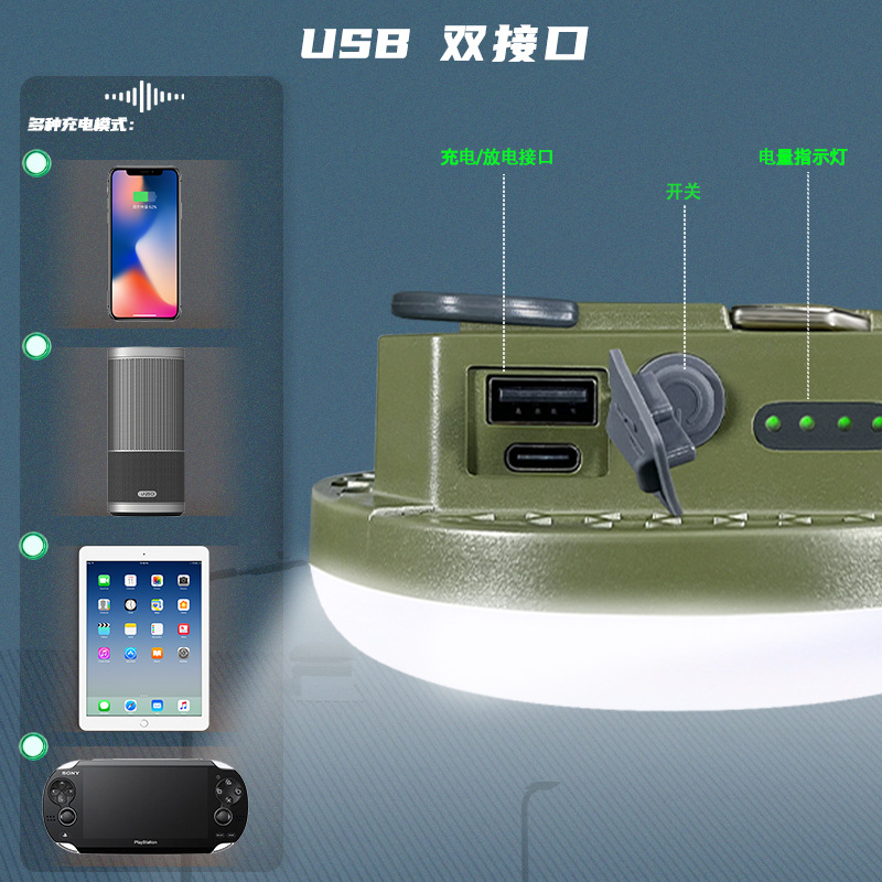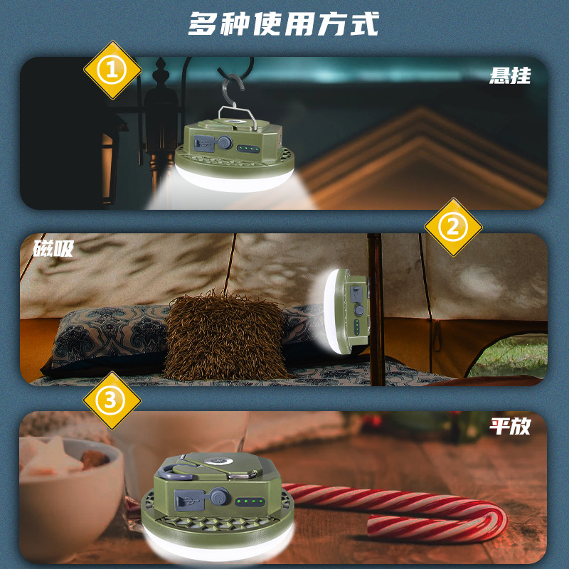 外贸专供便携式大功率可充电多功能LED磁吸露营灯、应急灯户外