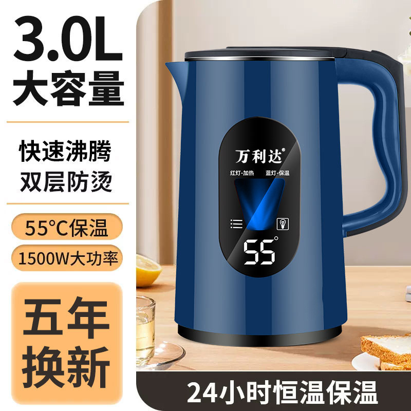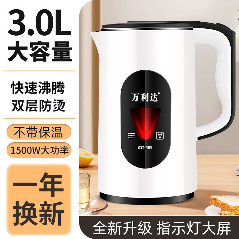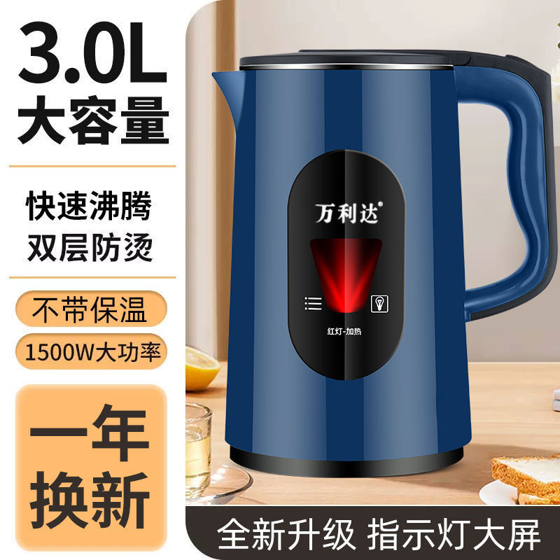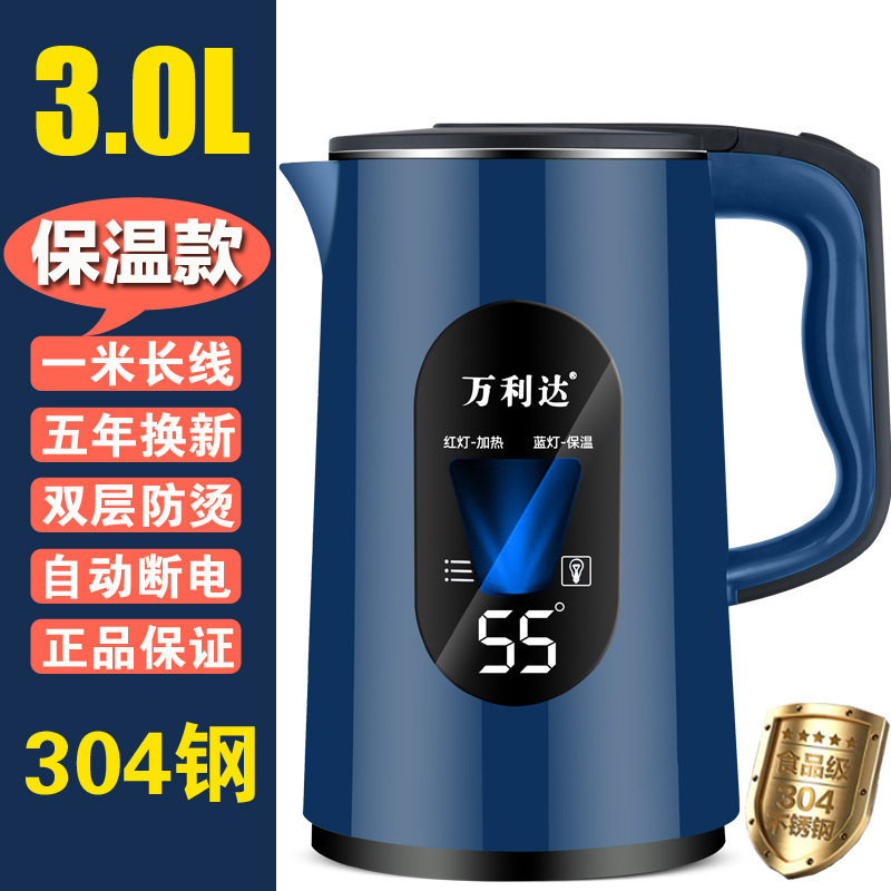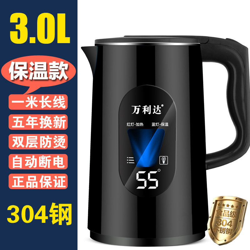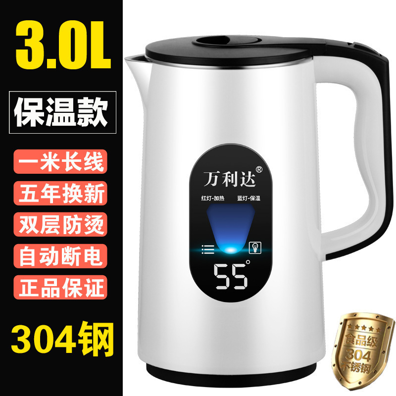 万利达保温一体电热水壶304不锈钢烧水壶大容量家用自动断
