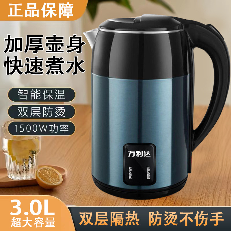 万利达电热水壶3升大容量家用商用烧水壶酒店办公宿舍保温恒温壶