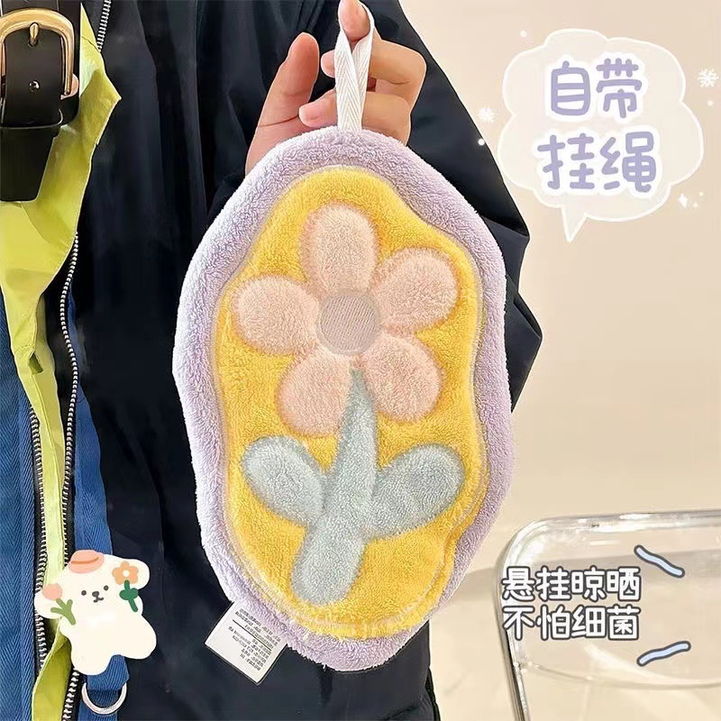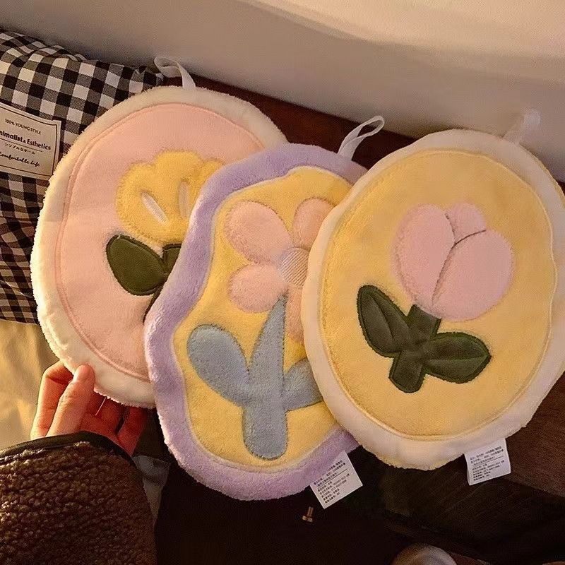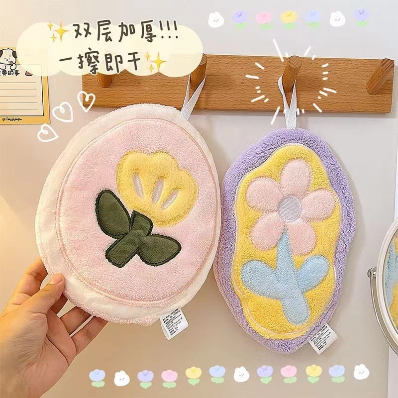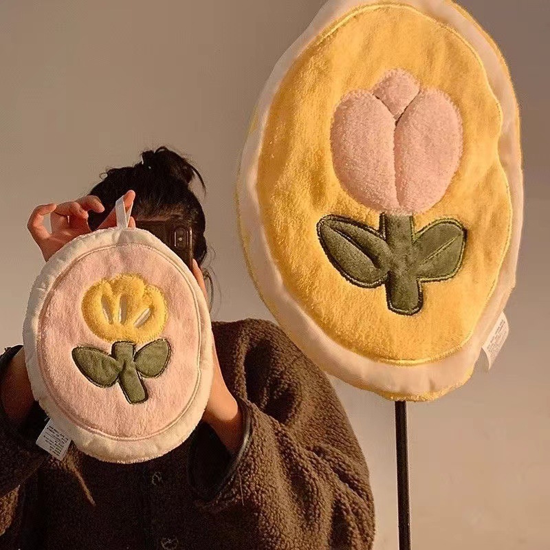 可爱花郁金香挂式擦手巾吸水柔软毛巾卫生间厨房擦手毛巾