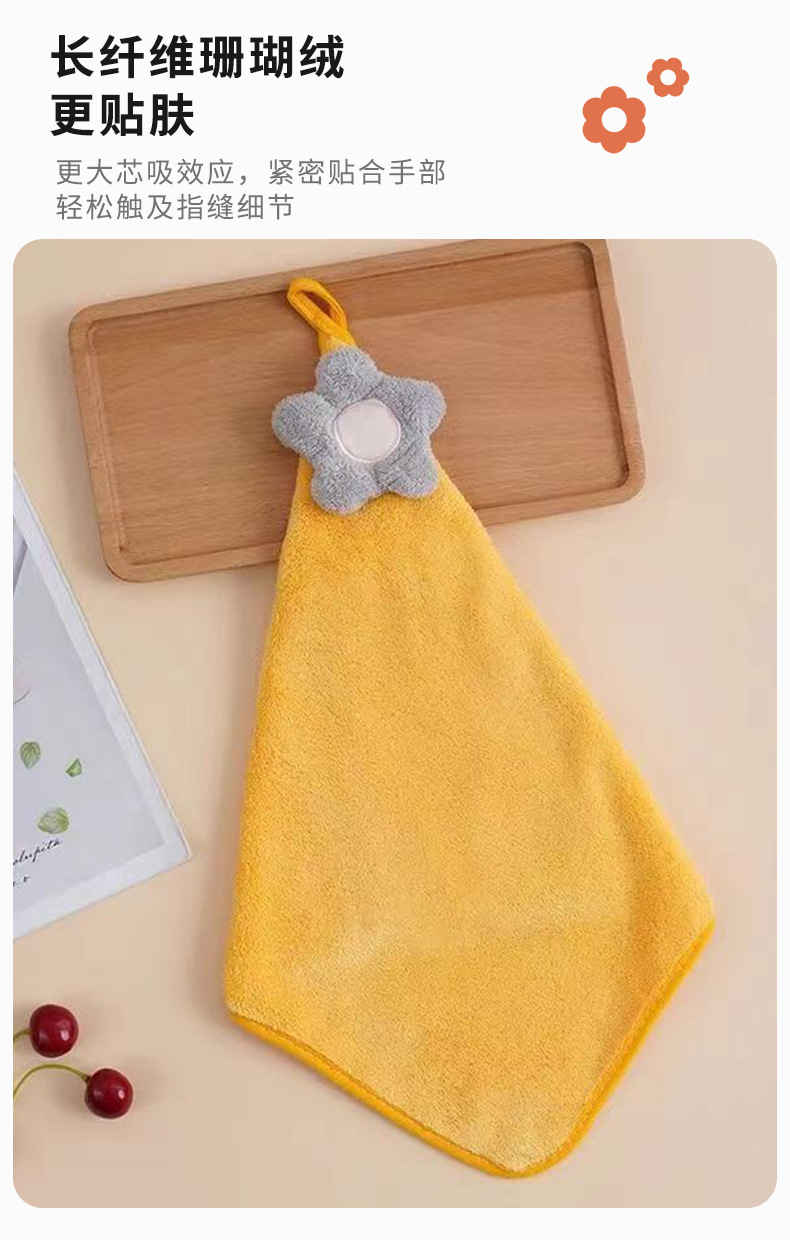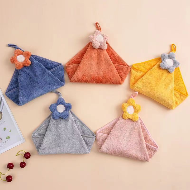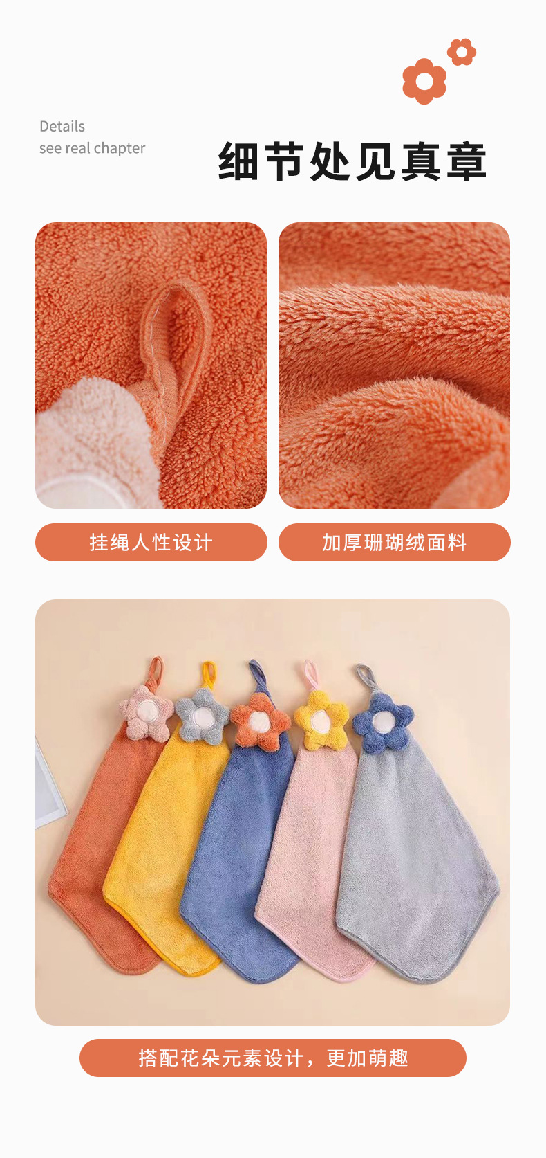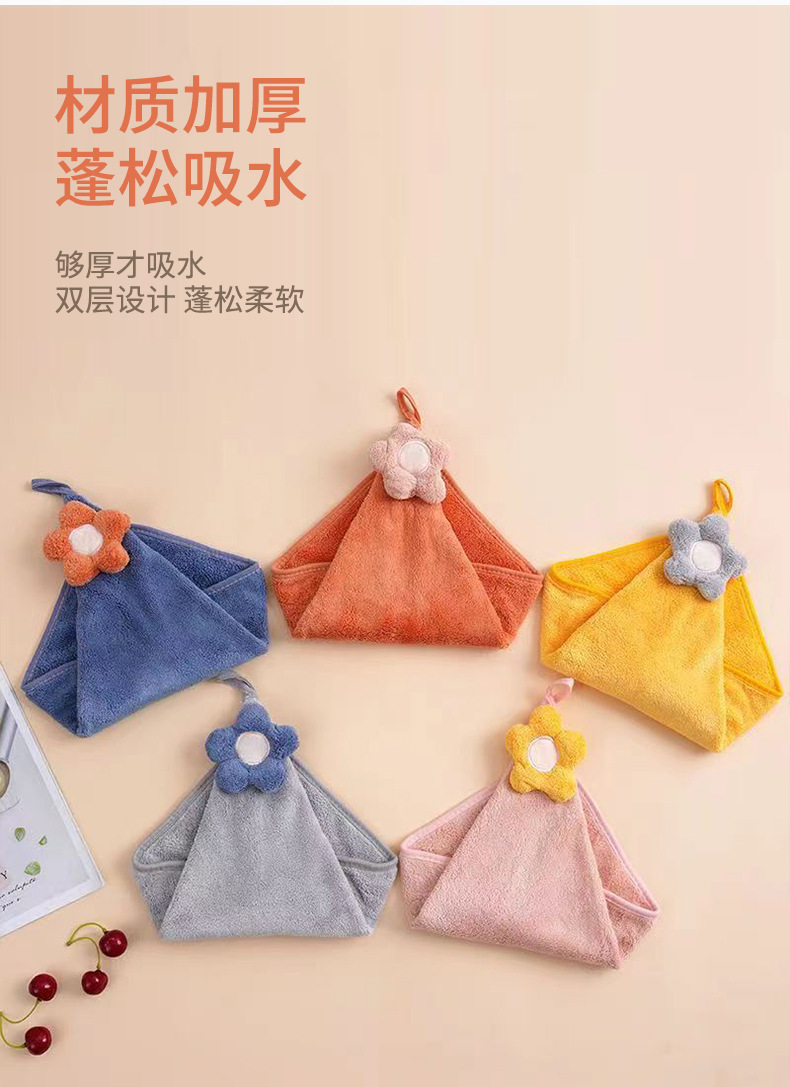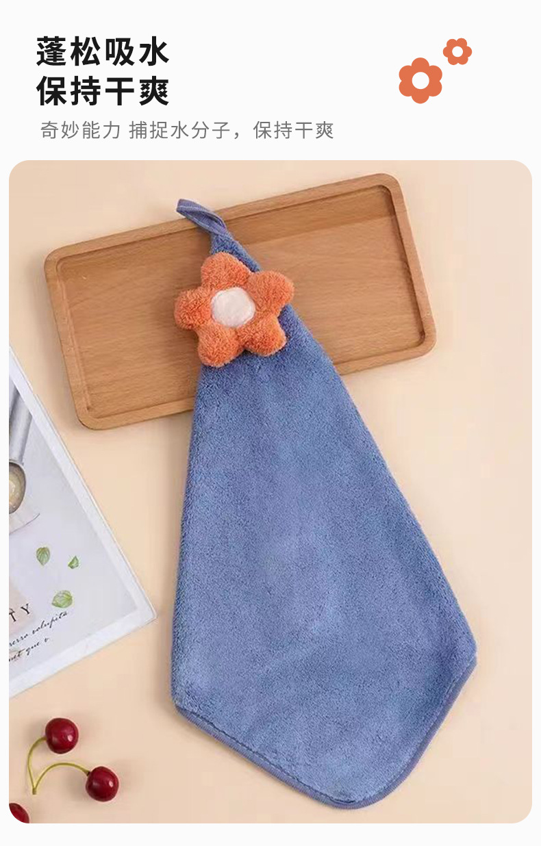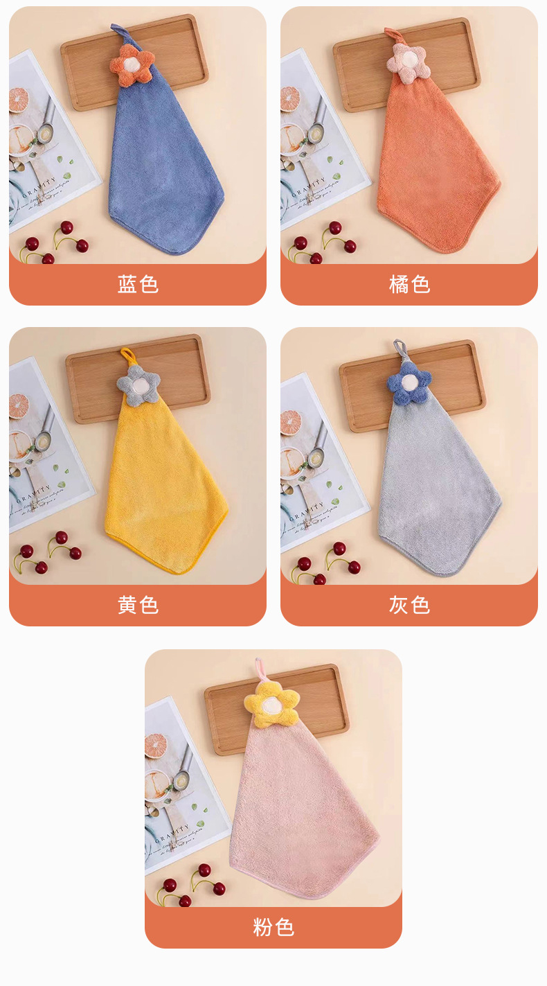 花朵擦手巾素色加厚珊瑚绒方巾厂家批发家用卡通可挂式吸水擦手巾