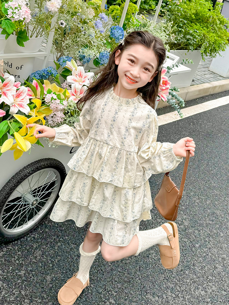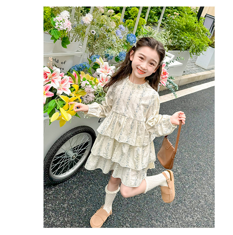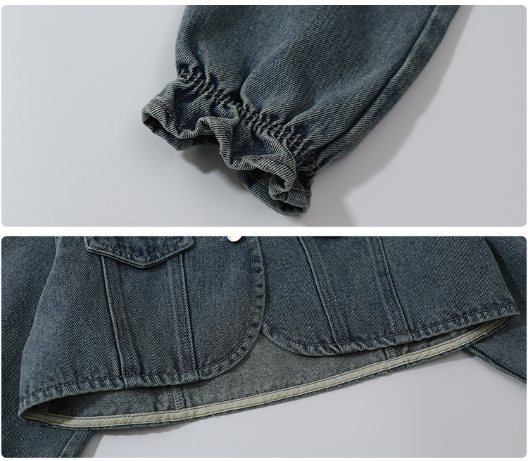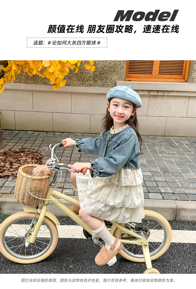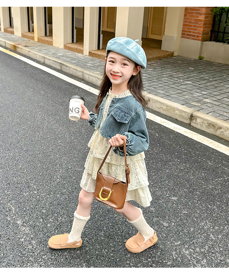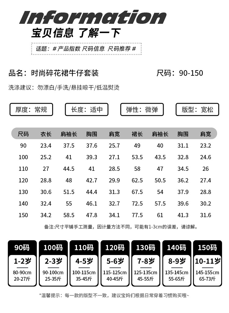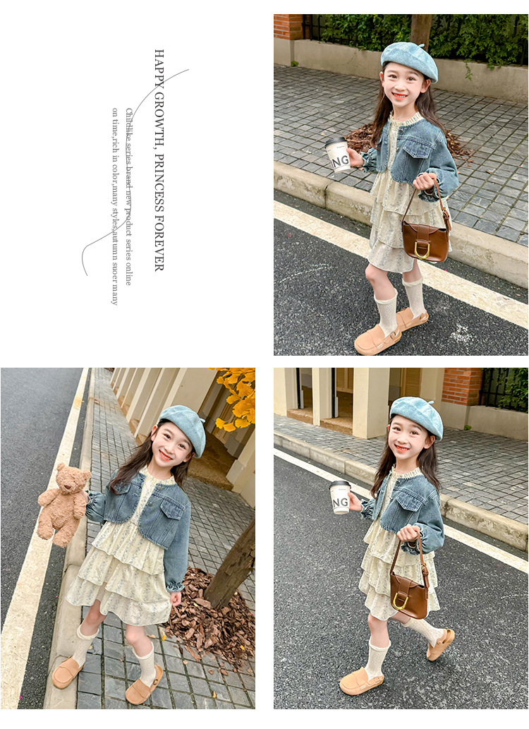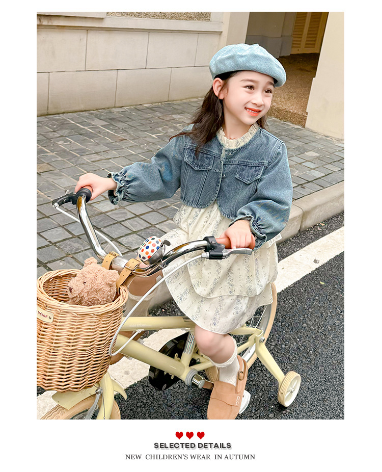 女童套装2024碎花裙秋款儿童时髦牛仔外套连衣裙宝宝两件套秋季