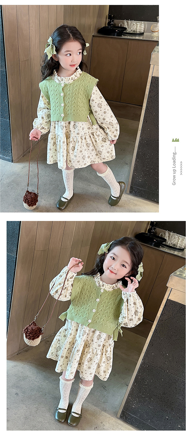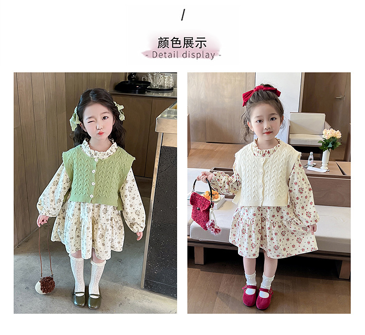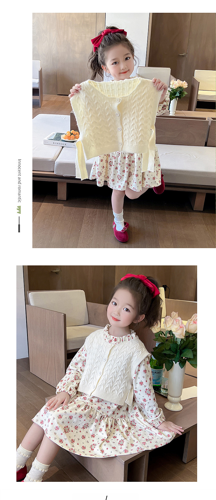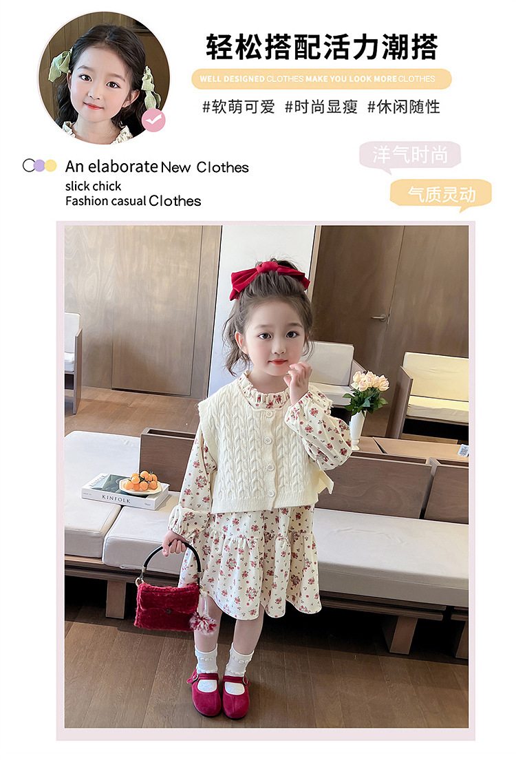 女童春秋碎花连衣裙新款儿童洋气毛线衣马甲春秋款女宝宝连衣裙潮