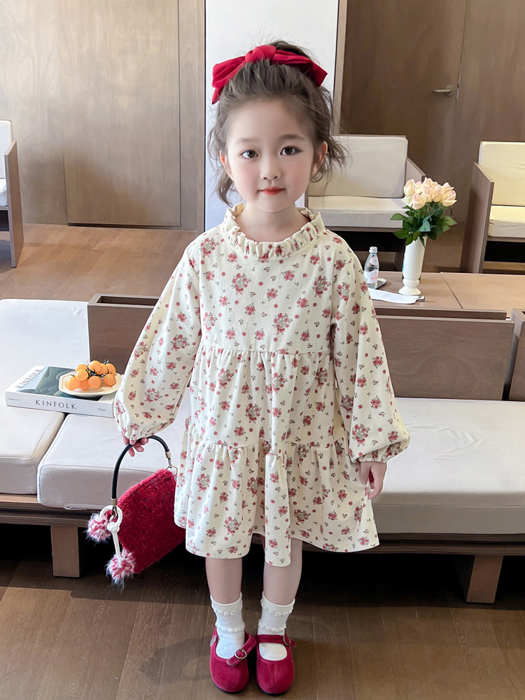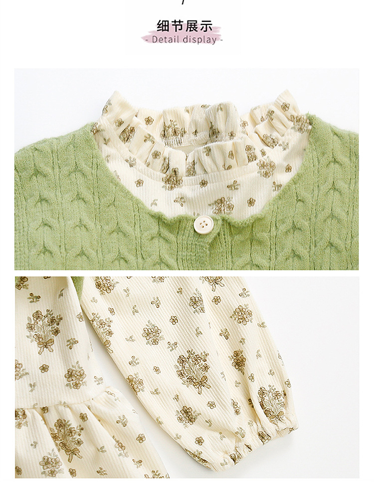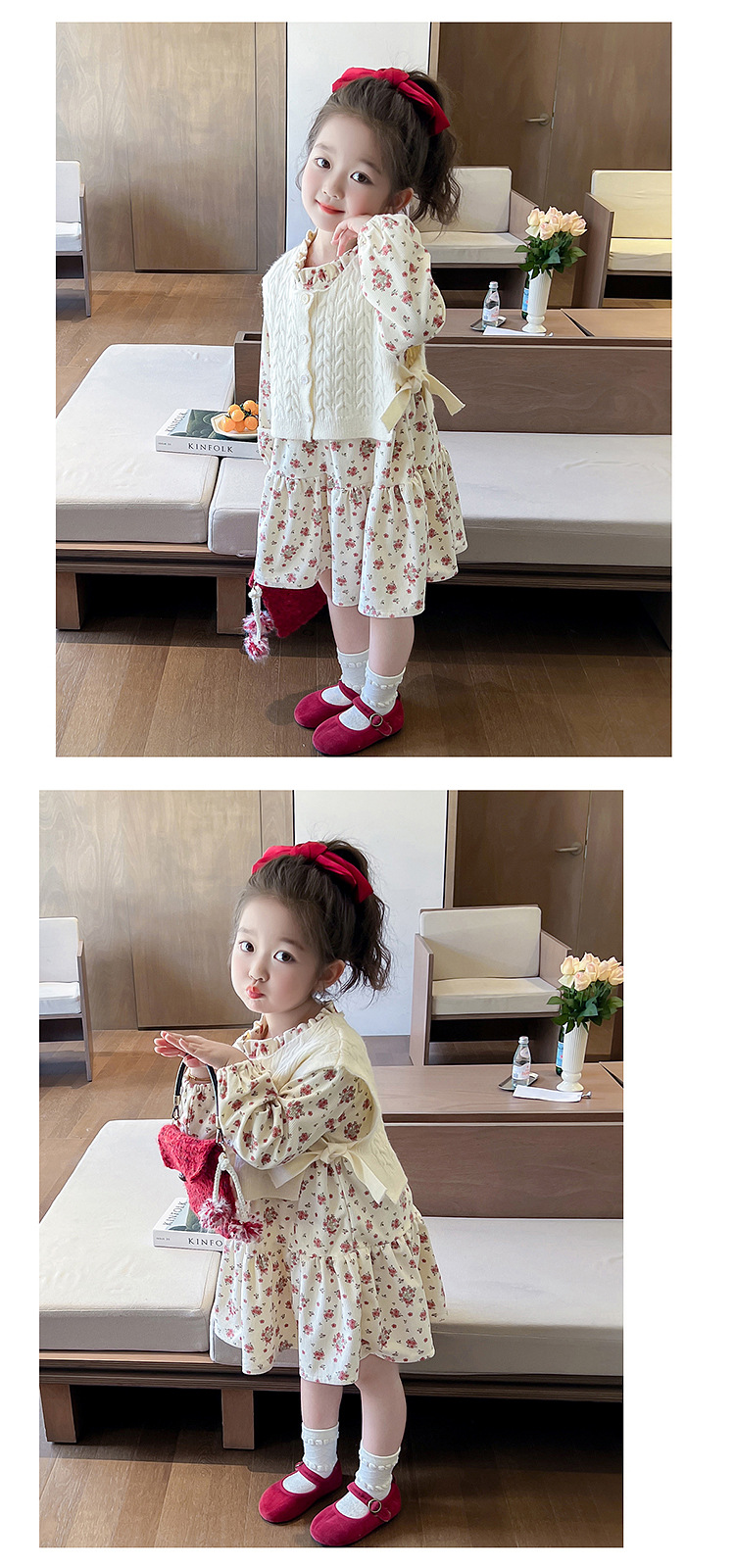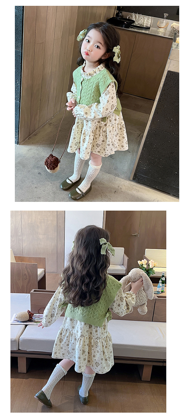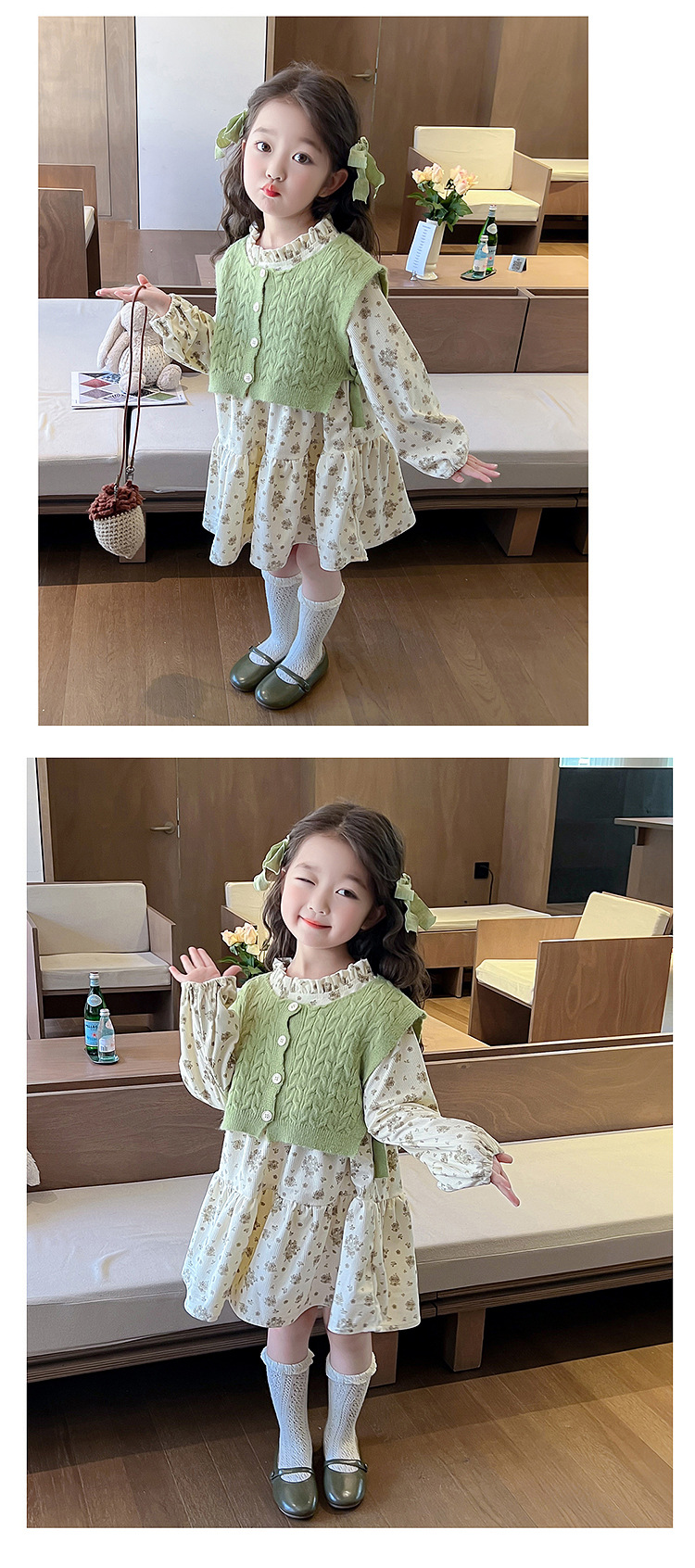 女童春秋碎花连衣裙新款儿童洋气毛线衣马甲春秋款女宝宝连衣裙潮