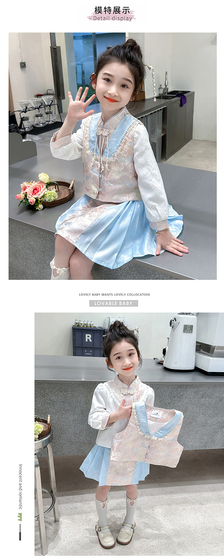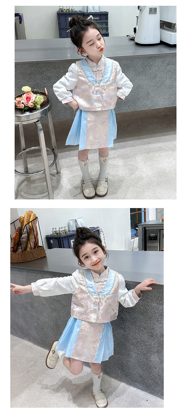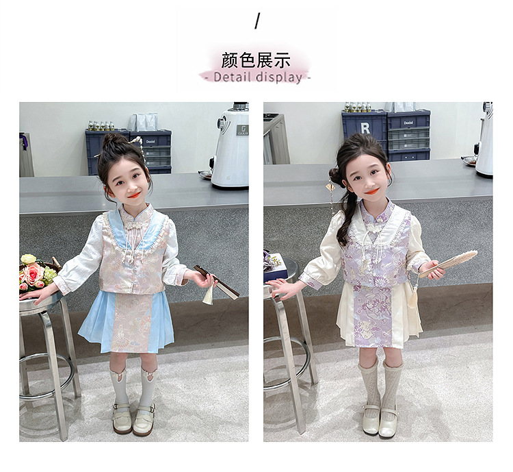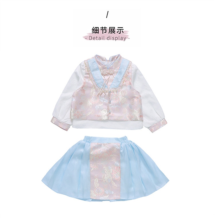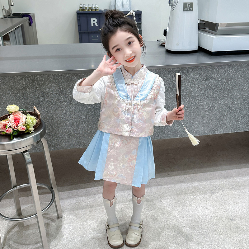 女童秋装套装女宝宝秋款新中式中国风马面短裙儿童秋季新款三件套