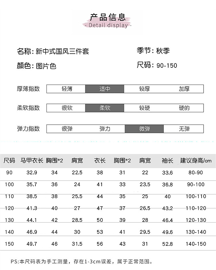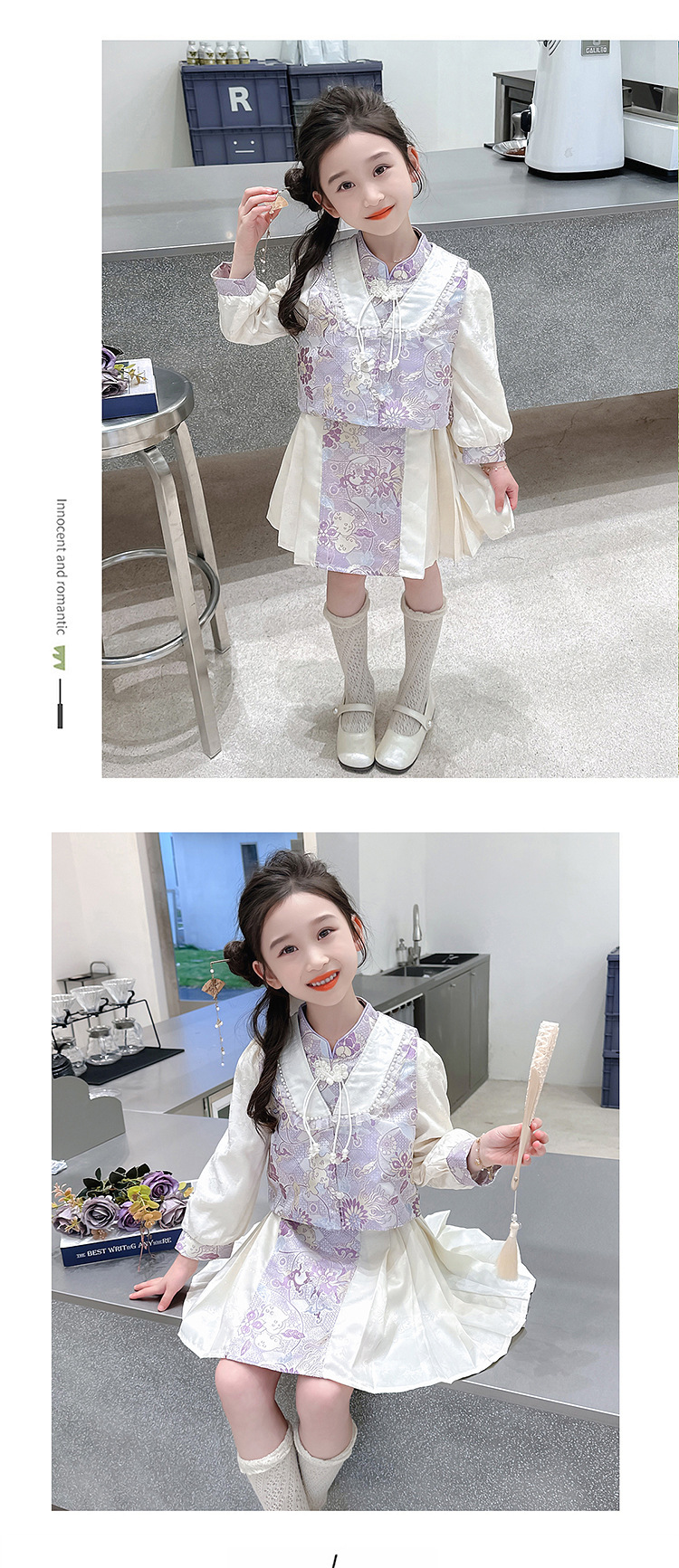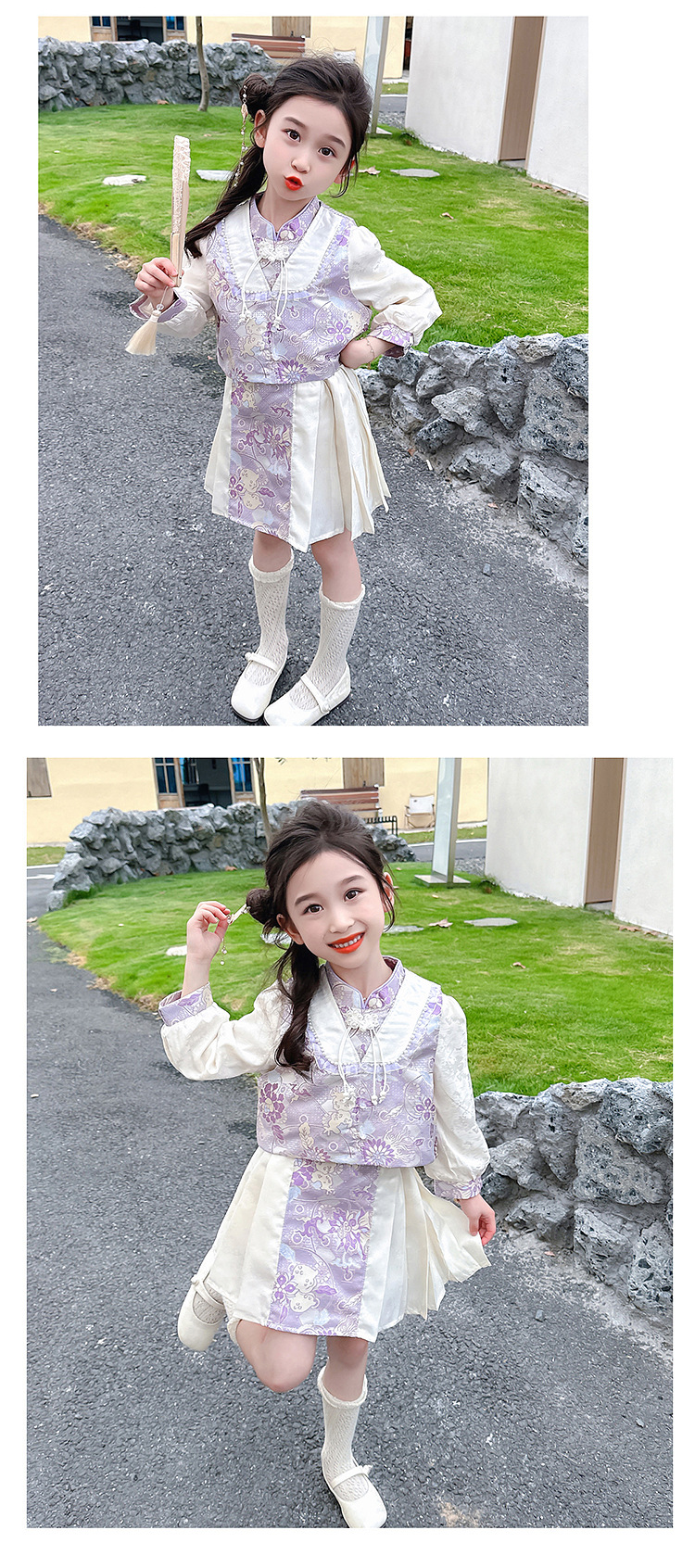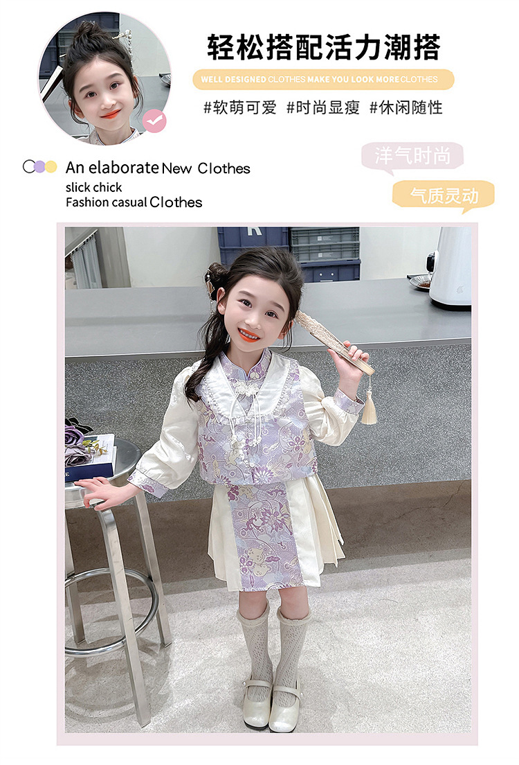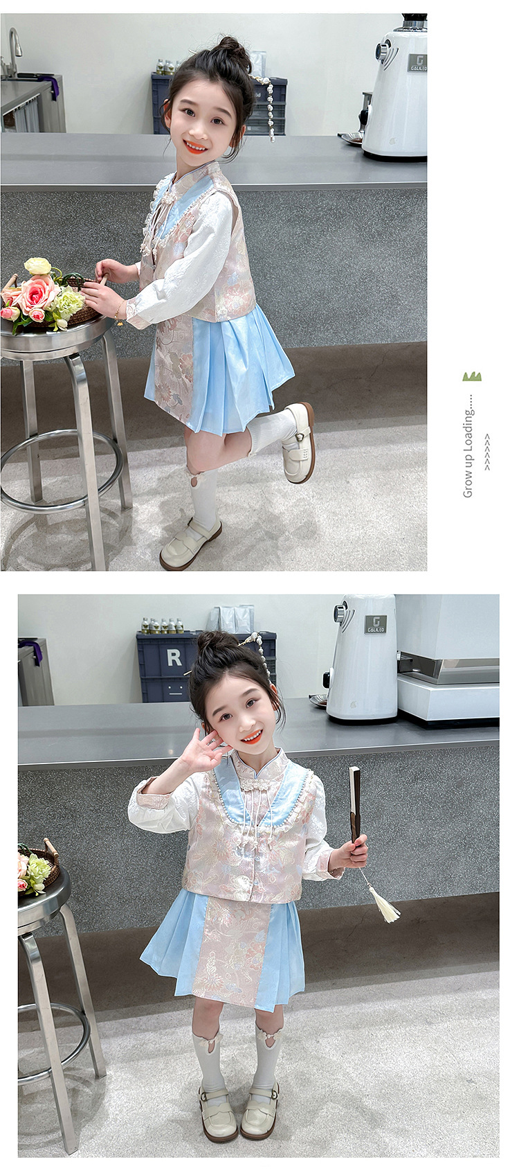 女童秋装套装女宝宝秋款新中式中国风马面短裙儿童秋季新款三件套