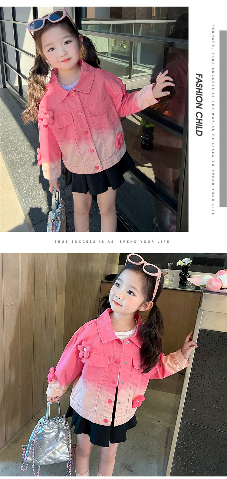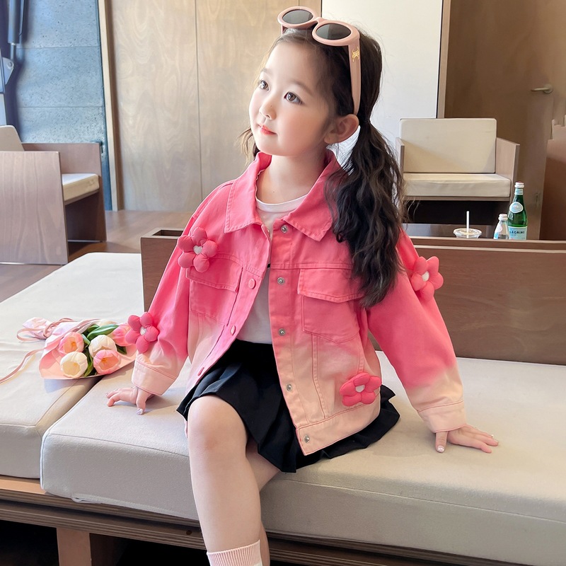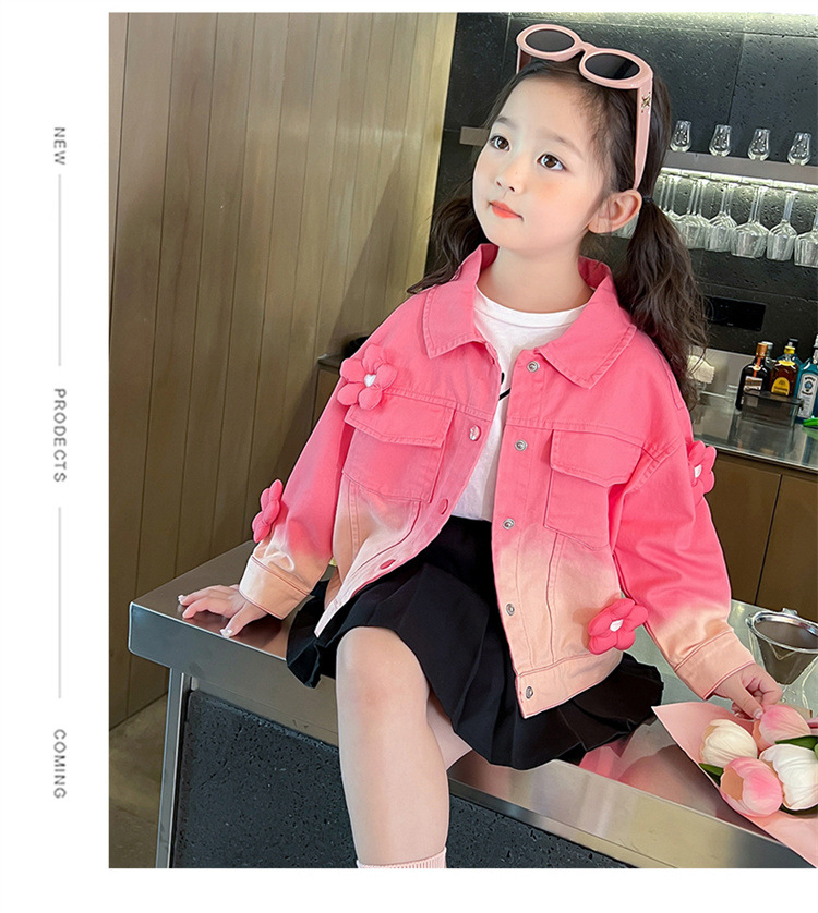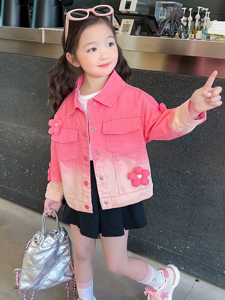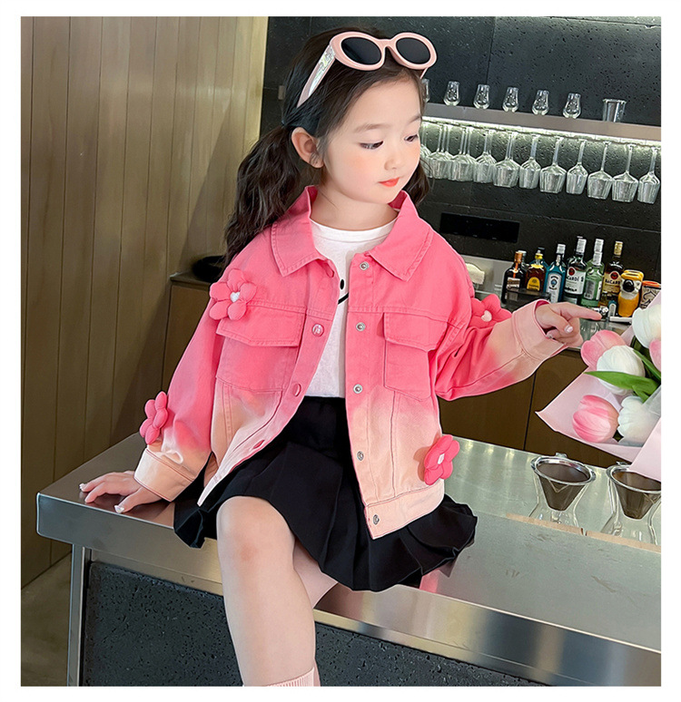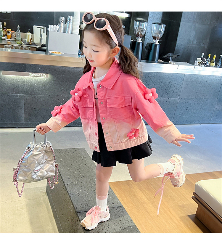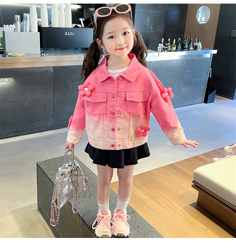 儿童秋装女童牛仔外套女孩渐变立体小花夹克上衣女宝2024新款衣服