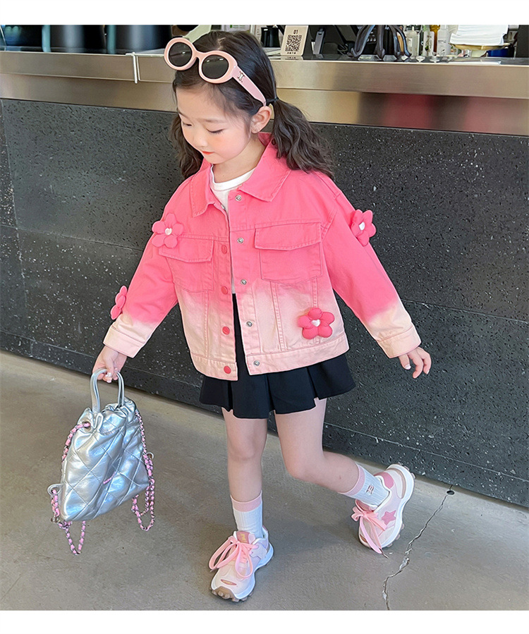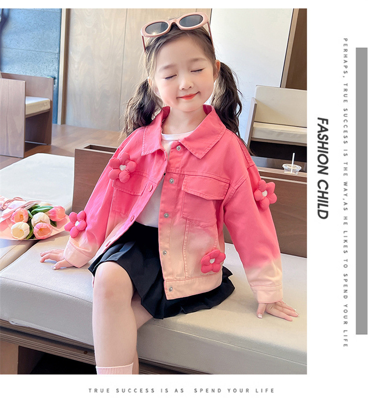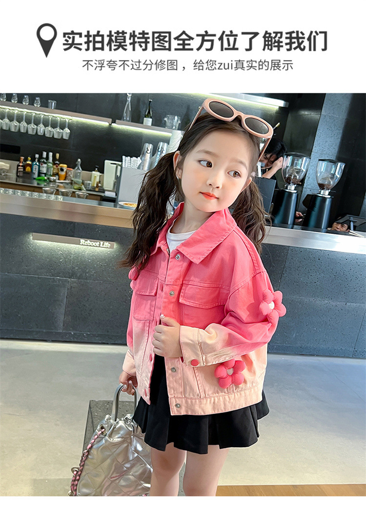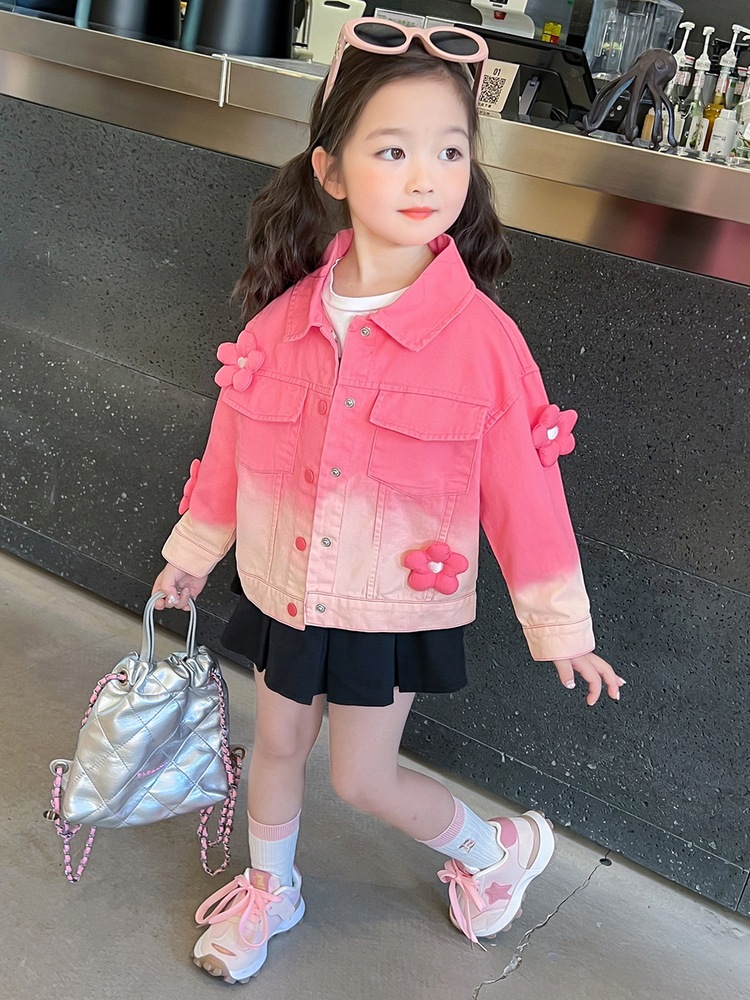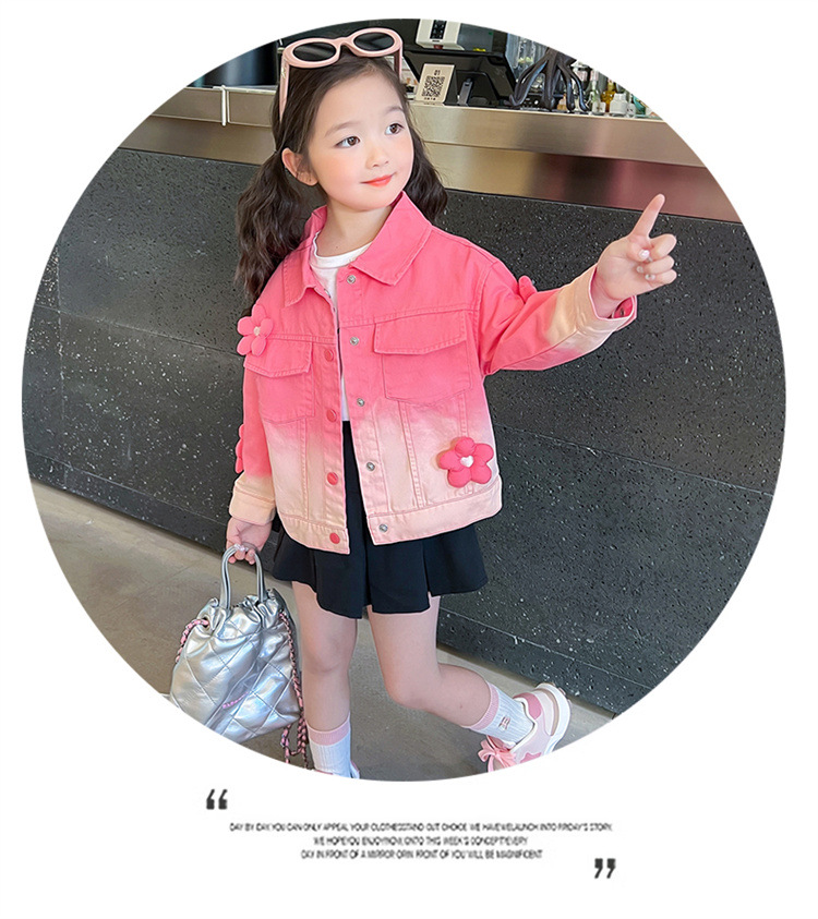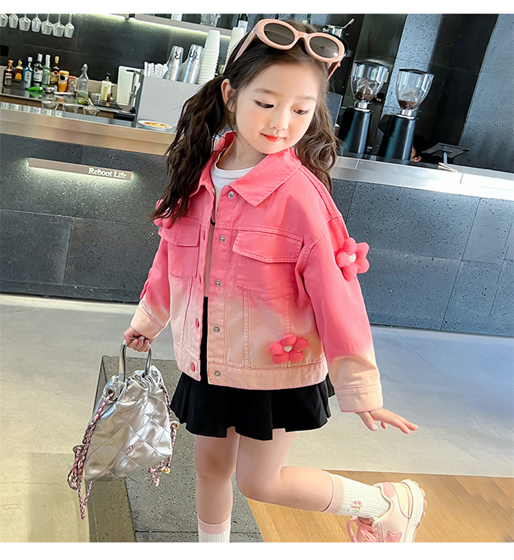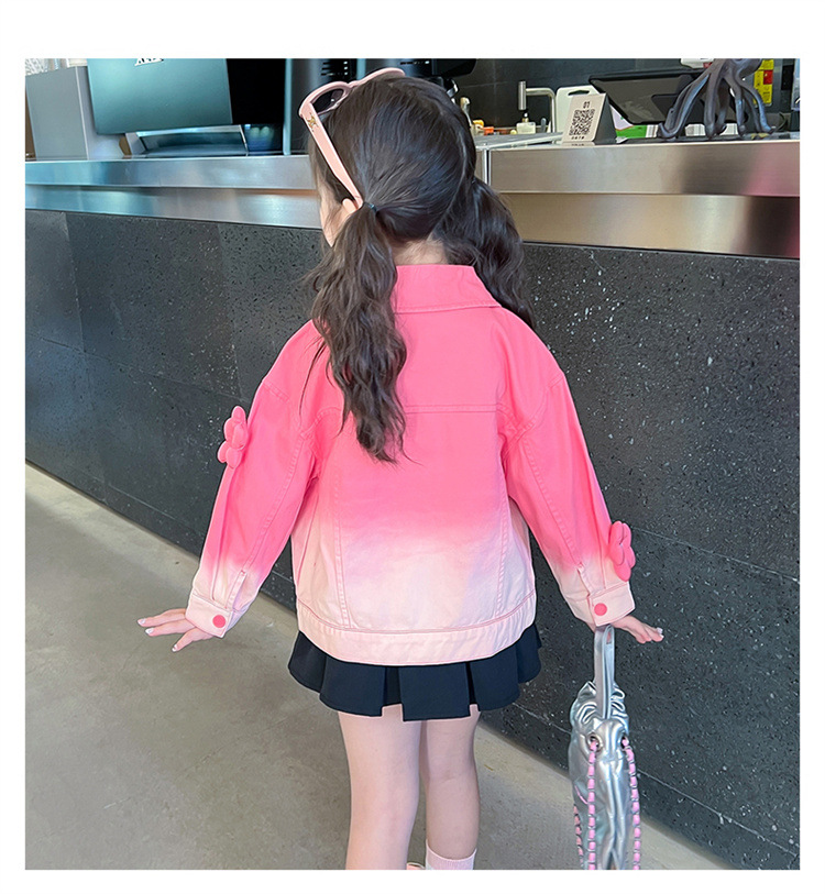 儿童秋装女童牛仔外套女孩渐变立体小花夹克上衣女宝2024新款衣服
